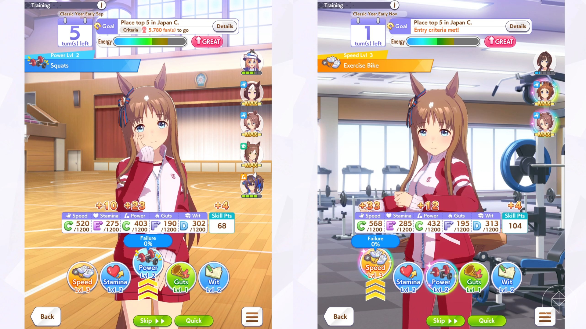 Zanim skupisz się na statystykach, zwróć uwagę na poziom przyjaźni z kartami wsparcia. Trening z przyjacielem zwiększa wskaźnik przyjaźni, a gdy osiągniesz pomarańczowy poziom, odblokujesz tęczowy trening, który daje dodatkowe punkty statystyk. To naprawdę robi różnicę!