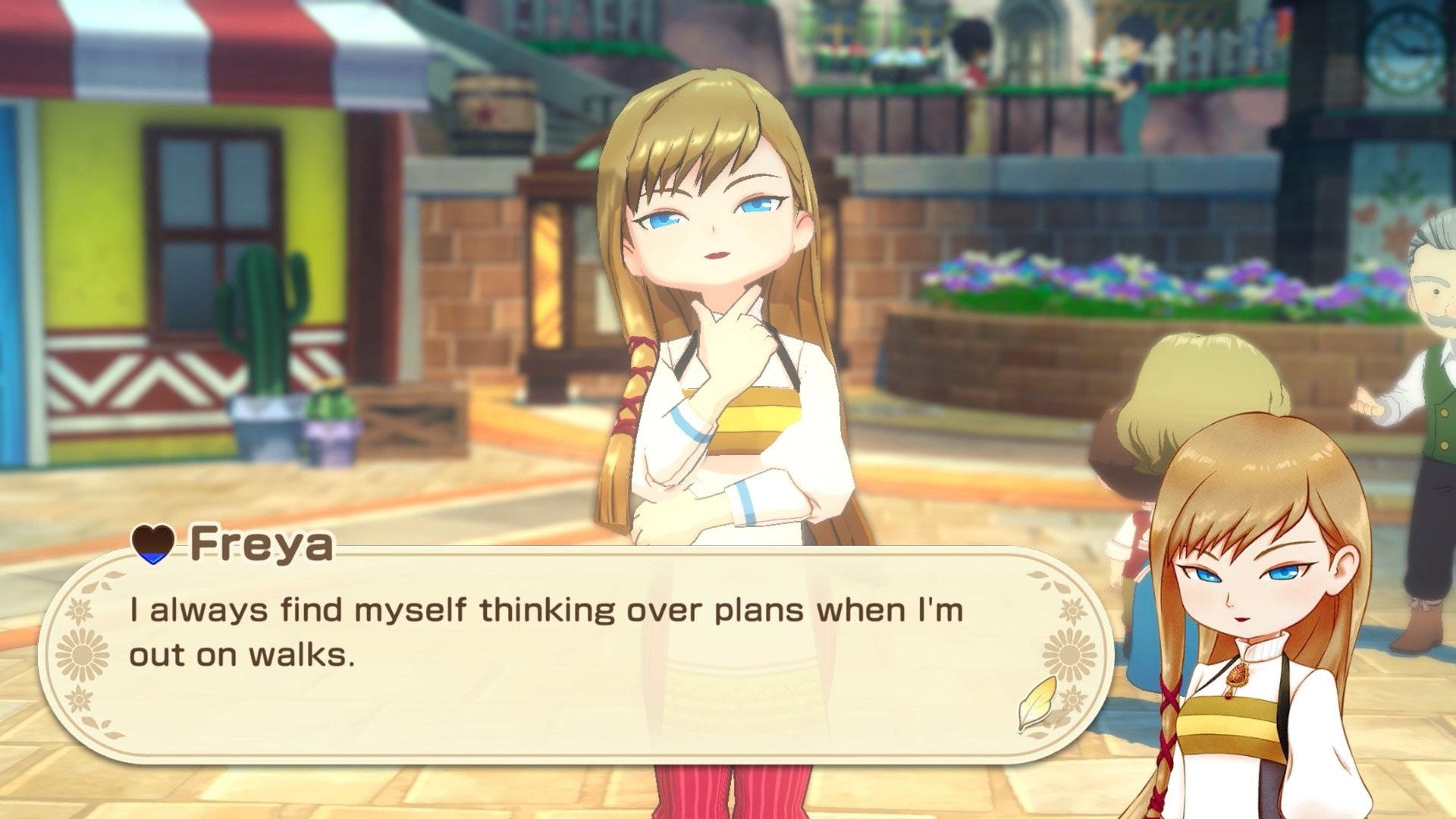 Freya pracuje w mieście, ale często odwiedza miasteczko i zatrzymuje się w kawiarni po pracy. Zwraca uwagę na szczegóły i chętnie poznaje nowe hobby.