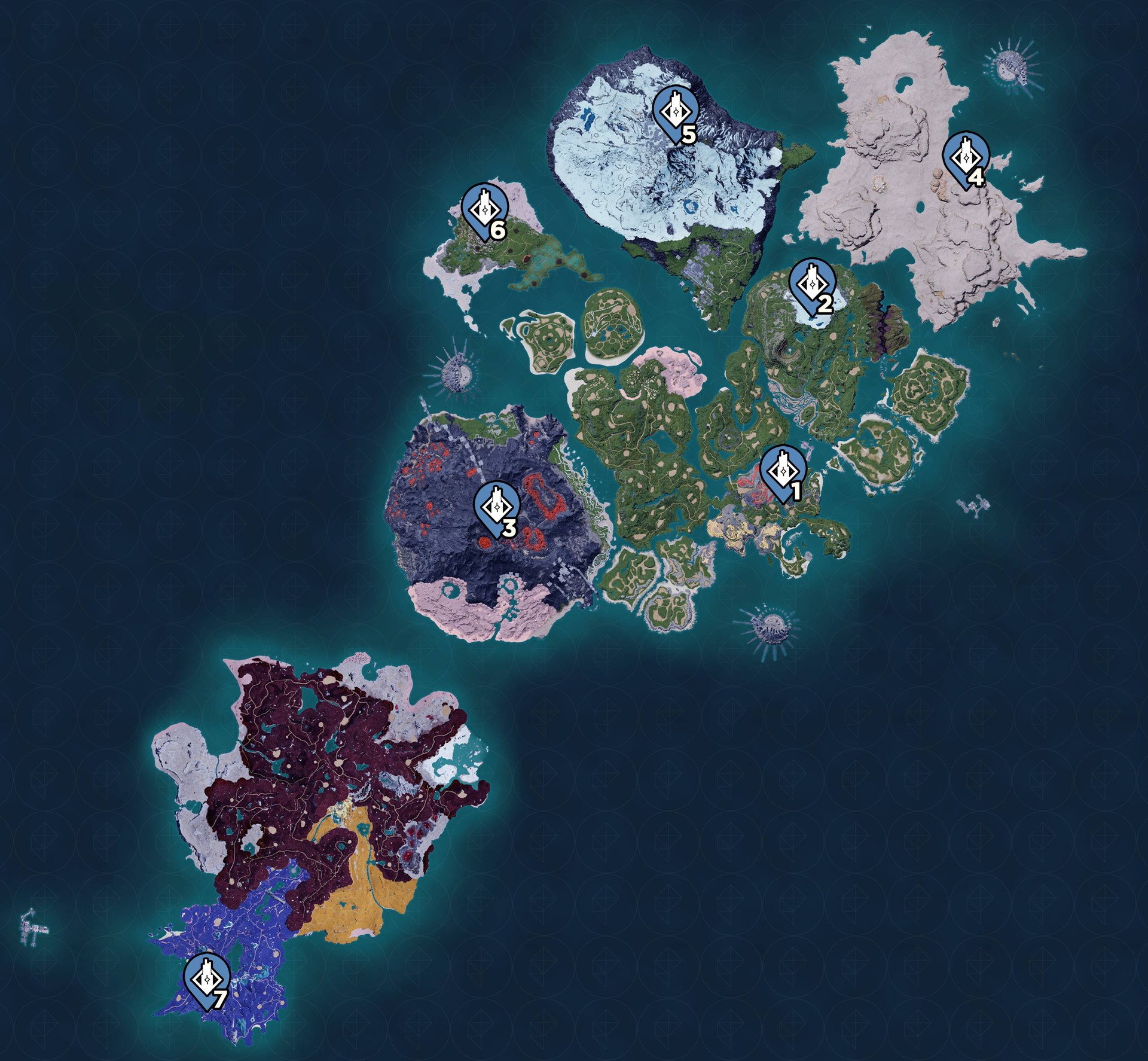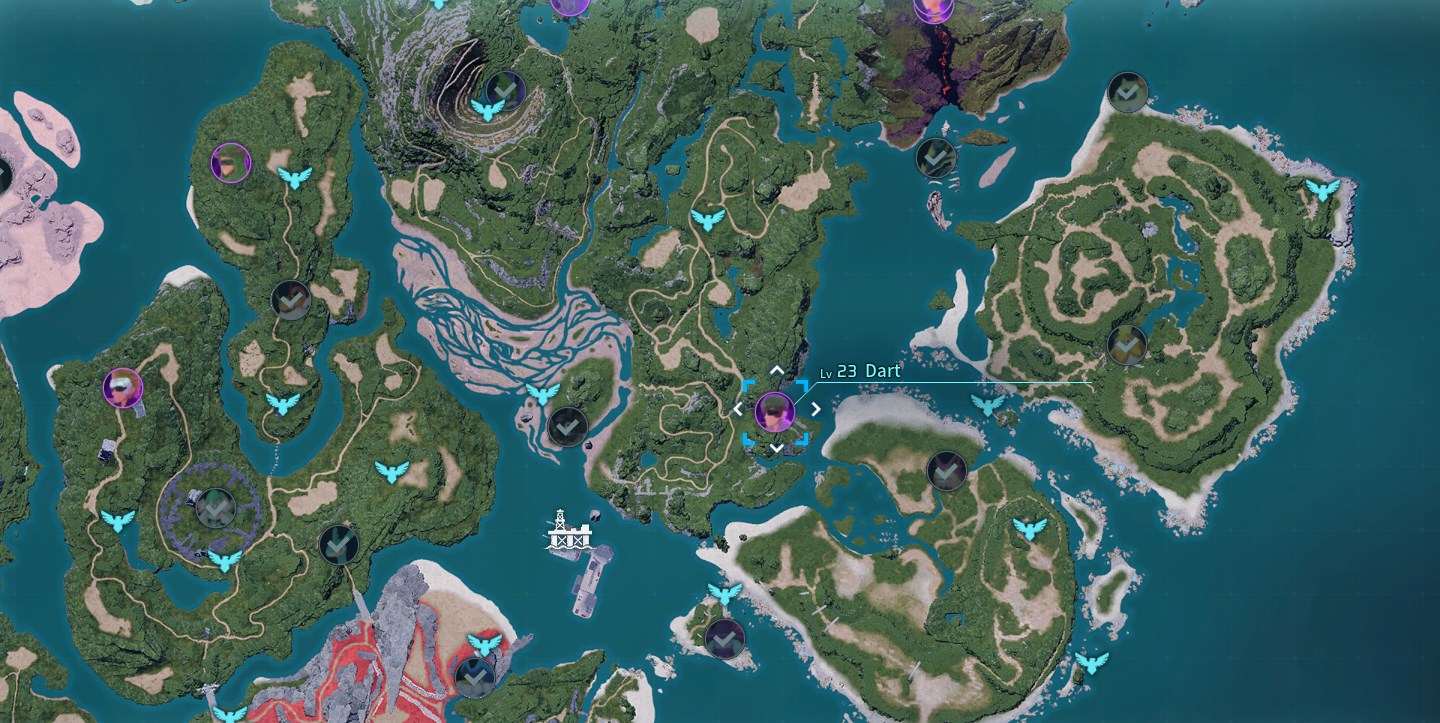 Na mapie roi się od Alpha Pal bossów. Możesz spotkać je zarówno w otwartym świecie, jak i w specjalnych instancjach przypominających lochy. Łatwo je rozpoznać – są oznaczone na mapie okrągłym portretem. Poziom trudności rośnie wraz z twoim levelem, więc szykuj się na wyzwania!