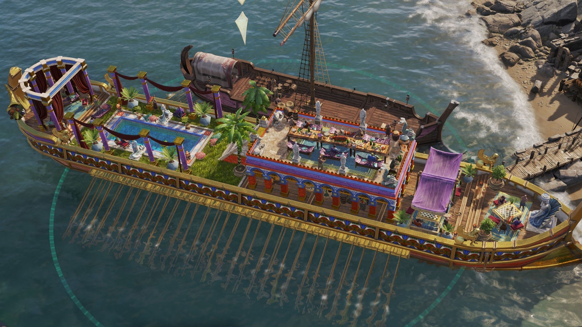 Silnik gry renderuje różne elementy środowiska: morze, formacje skalne oraz roślinność i zwierzęta. Można przybliżać widok do poziomu, gdzie widać szczegóły modeli — np. błyszczące skóry, postarzaną drewnianą fakturę czy kota przemieszczającego się po mieście. Jednocześnie w materiale porównano ustawienia graficzne: przy przejściu z ultra-high na medium nie zaobserwowano drastycznej różnicy w większości elementów, choć rośliny uprawne wyglądają wyraźniej gorzej na niższych ustawieniach. Ponadto ustawienia gęstości tłumu wpływają na widoczność NPC; nawet przy najniższej gęstości otoczenie nadal wygląda „żywo”, a przy pełnym oddaleniu mieszkańcy znikają, ale widać wozy, drzewa i kolumny.