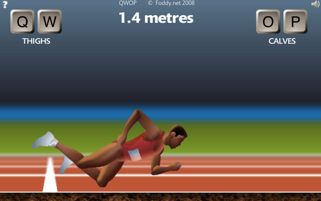 QWOP powstał w 2008 roku. Gracz kontroluje biegacza za pomocą klawiszy Q, W, O i P. Pomysł powstał podczas jednego dnia prototypowania i krótkiego szlifowania przez autora.