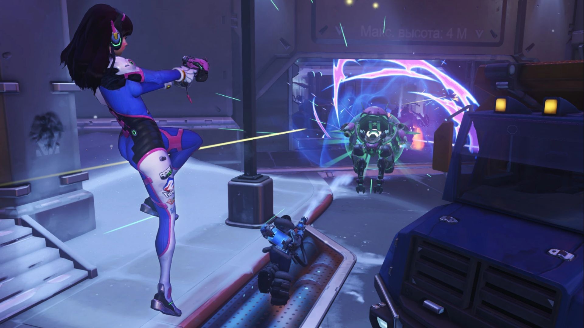 Ponadto, podczas używania Boosters D.Va odpycha przeciwników, jeśli się z nimi zderzy — jest to efekt kolizji wewnątrz animacji lotu.