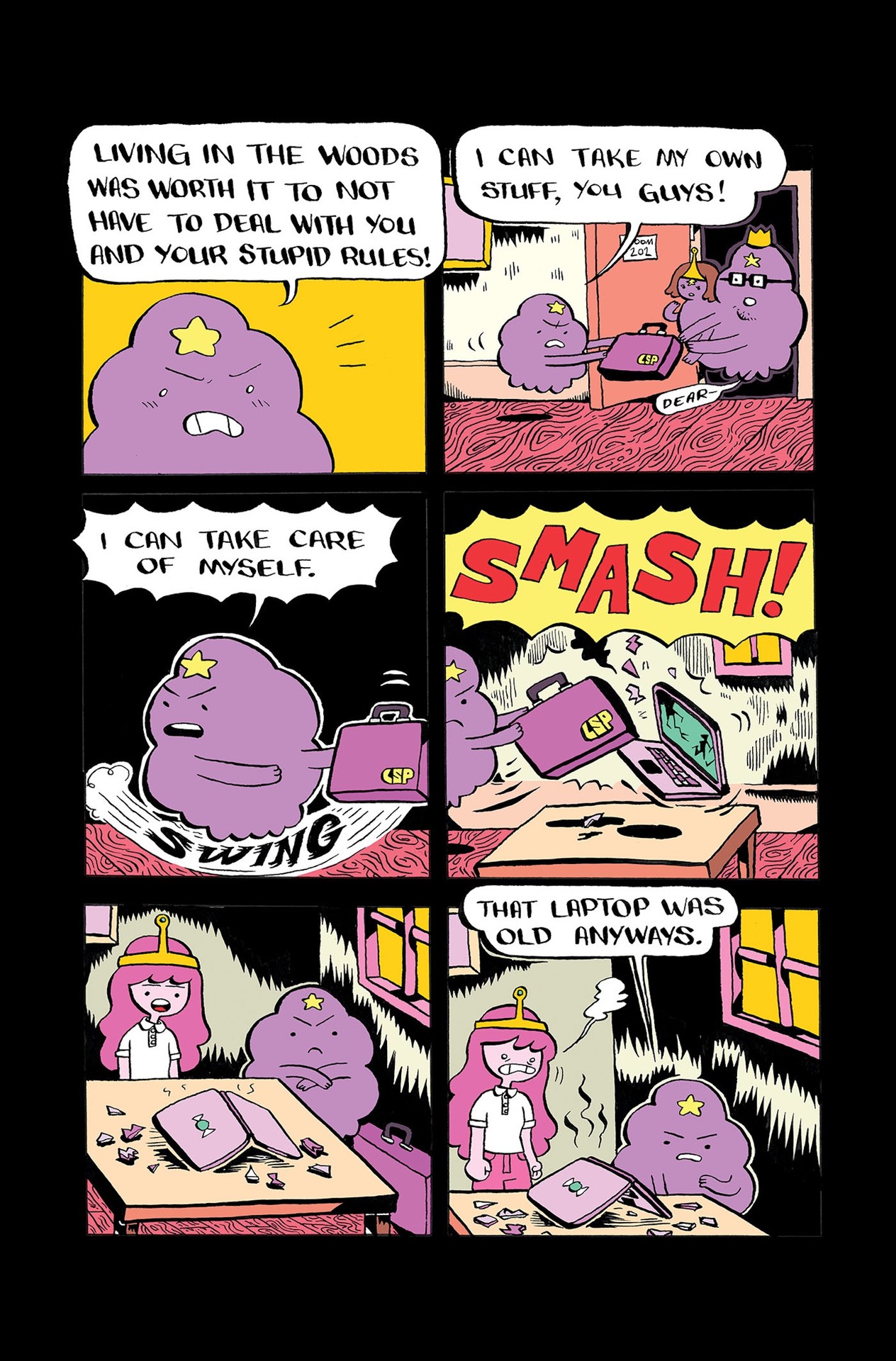 - W komiksie nie brakuje humoru, wyzwań i akcji, w tym prób zamachu na Bubblegum
