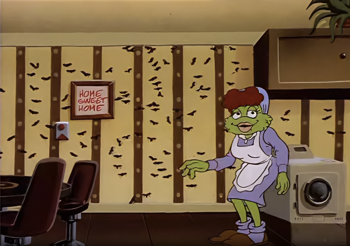 Serial zyskał też na oryginalności dzięki humorystycznym reklamom emitowanym w Toad TV – telewizji kontrolowanej przez Komplex, która służyła do manipulacji żabami. Reklamy oferowały m.in. kremy na brodawki, jedzenie zrobione z rozgniecionych much, czy tapety, które jednocześnie łapały muchy. To wyraźna satyra na przesadny konsumpcjonizm i patriarchalne wzorce.