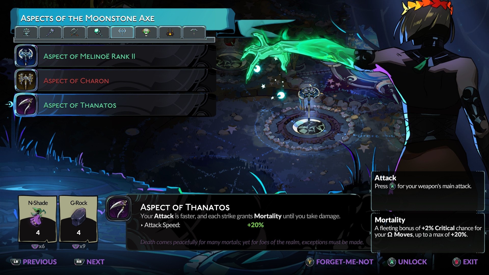 Glassrock przyda się przede wszystkim do ulepszeń broni i odblokowywania inkantacji. Na przykład możesz kupić w Silver Pool aspekty takie jak Aspect of Thanatos dla Moonstone Axe albo Aspect of Artemis dla Sister Blades. Dlatego warto zbierać glassrock regularnie, jeśli planujesz inwestować w konkretne aspekty broni.