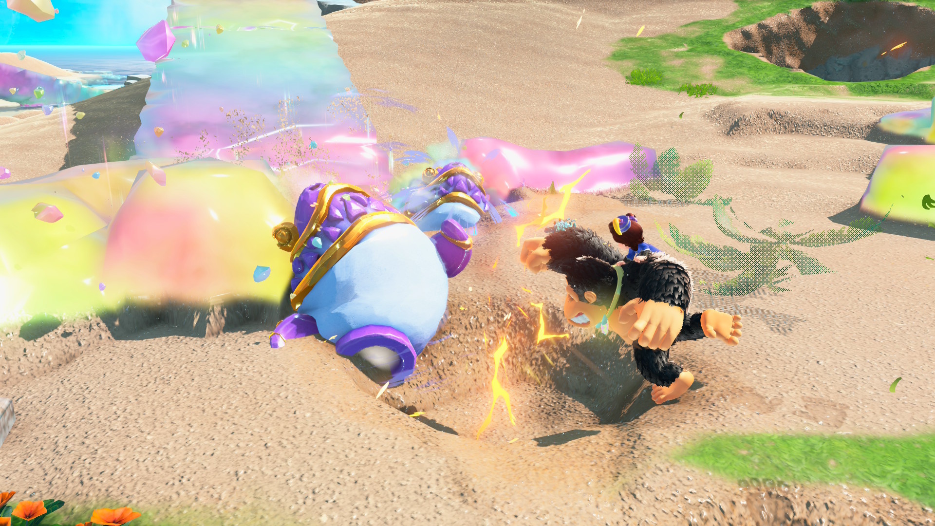 Cała rozgrywka opiera się na uderzaniu i rozbijaniu wszystkiego, co stanie na drodze. Efekty destrukcji są naprawdę satysfakcjonujące – ziemia wybucha, szkło rozpryskuje się z hukiem, a reakcje przeciwników po ciosach mają zabawny, kreskówkowy charakter. To właśnie te detale sprawiają, że Bananza trzyma poziom i nawet po wielu godzinach daje radość z rozgrywki.