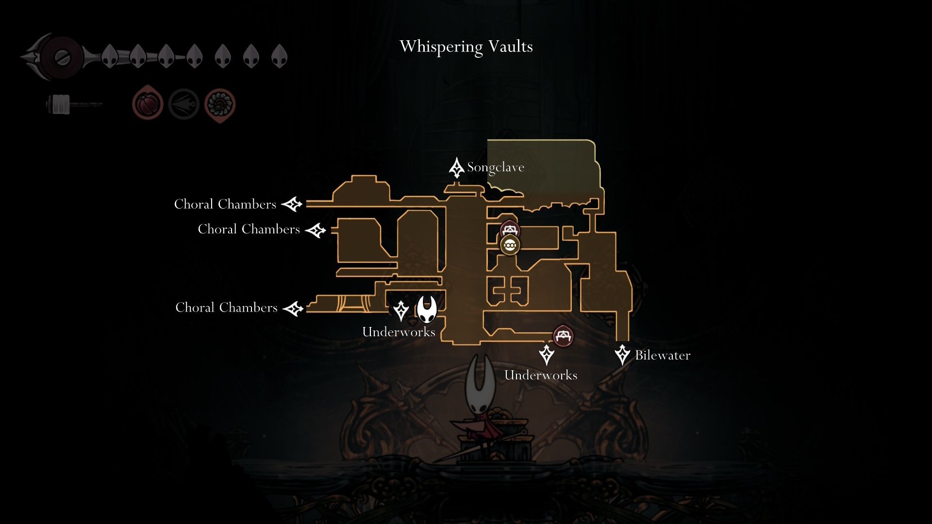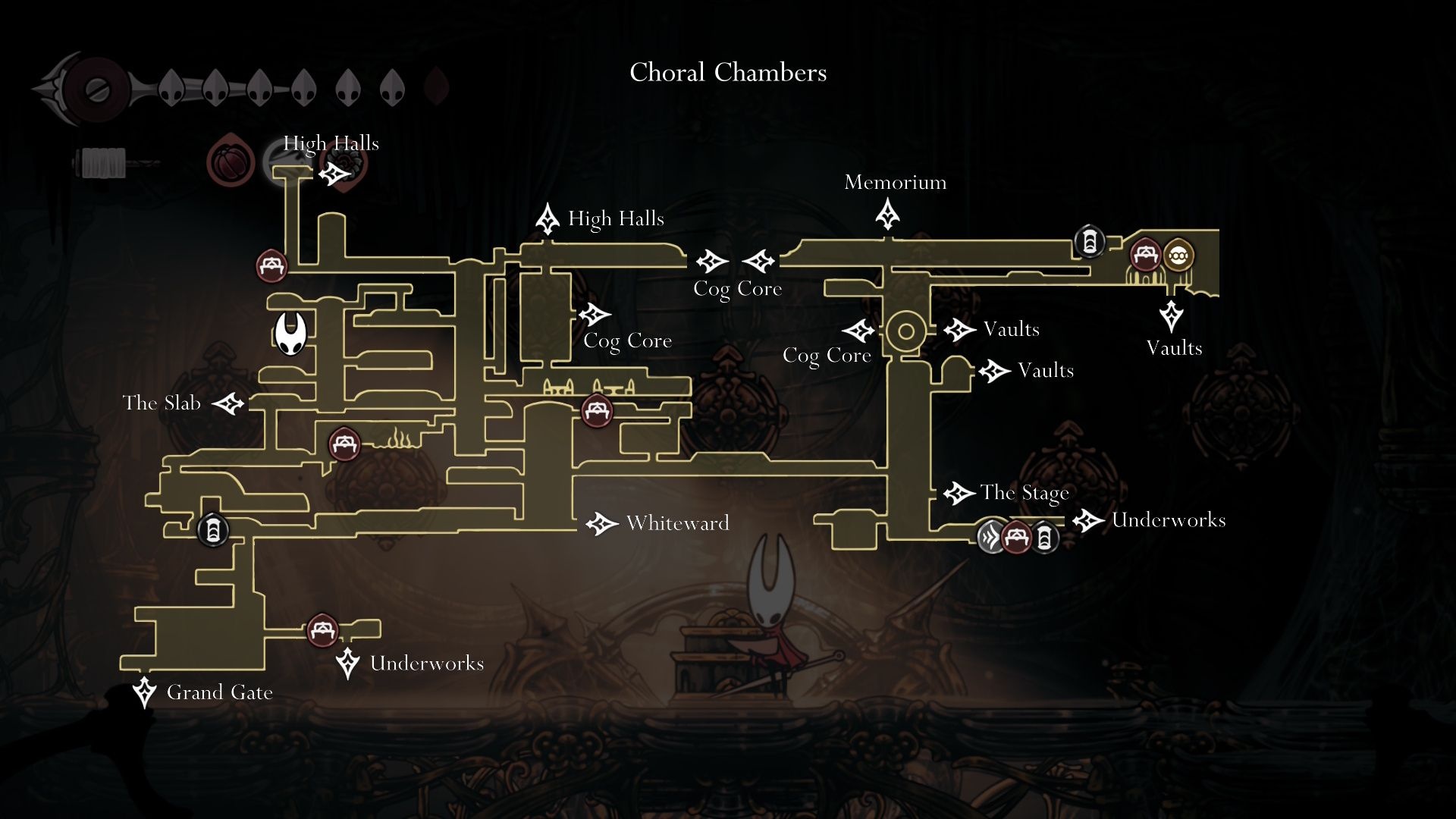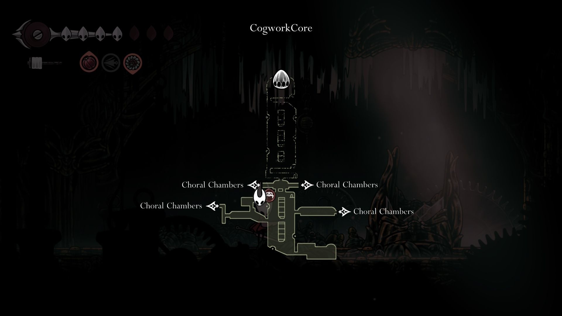 Część Cogheart w Choral Chambers znajduje się ponad maszyną do wydawania silk — to pokój nad nią. Można tam też natrafić na Lost Flea w sąsiedniej komnacie. Pamiętaj, że silk z maszyny to opcja kryzysowa; zwykle silk zbierasz z wrogów na zewnątrz.