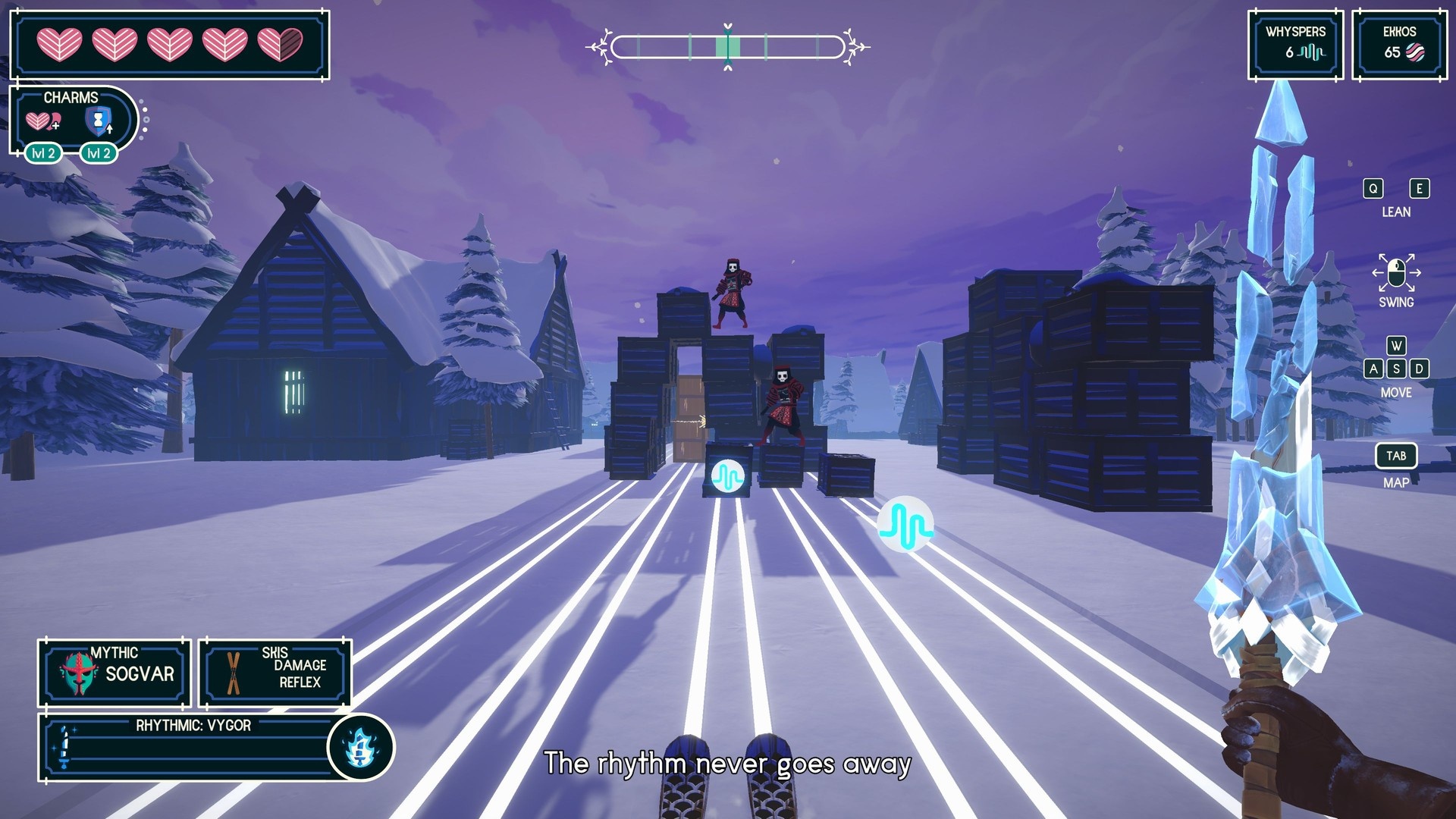 Pierwszy zdobywany miecz ma efekt pozwalający na odzyskiwanie zdrowia. Z czasem gracz odblokowuje kolejne miecze z różnymi efektami. W praktyce to oznacza, że podstawowe działania są jednakowe przy każdym utworze, natomiast różne miecze zmieniają sposób prowadzenia pojedynku i zarządzania zdrowiem.