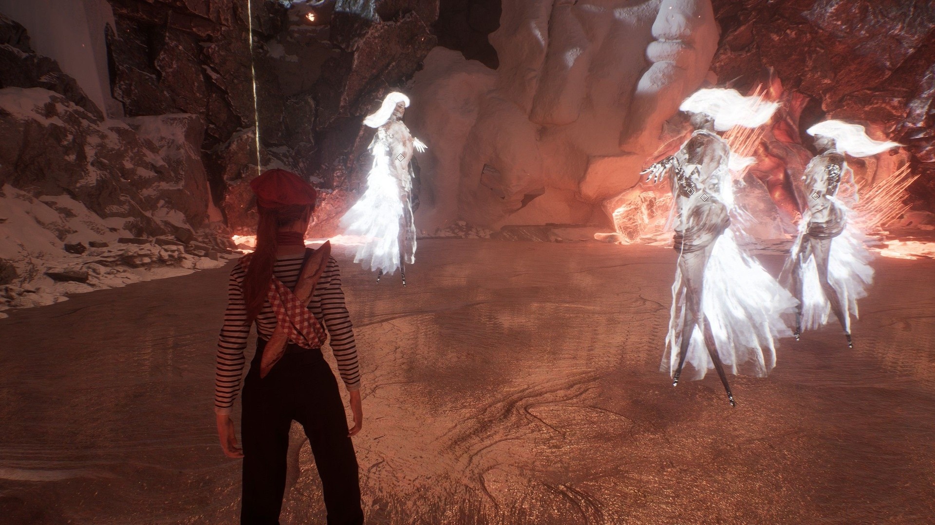 Podążając po schodach w kierunku Glacial Falls znajdziesz Danseuse Teacher i trzech minor Nevronów. Po rozmowie następuje próba parry — sparuj wszystkie ataki, aby zdobyć Danseuse Outfit dla Lune.