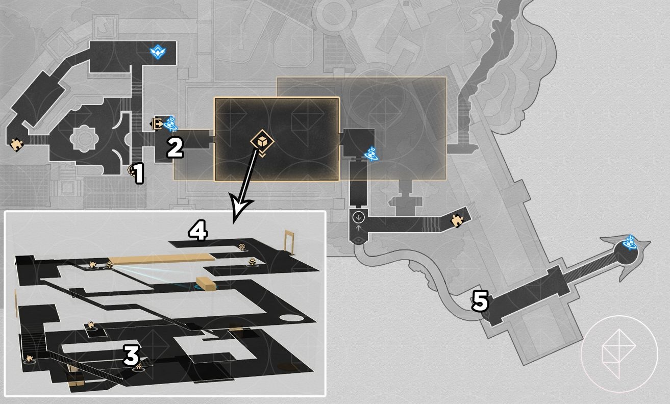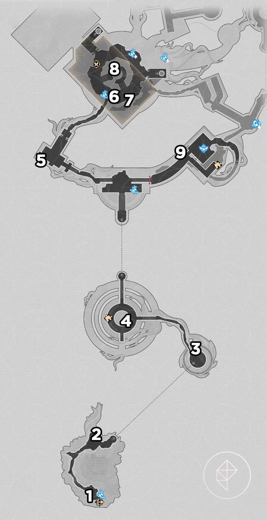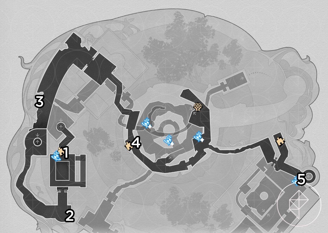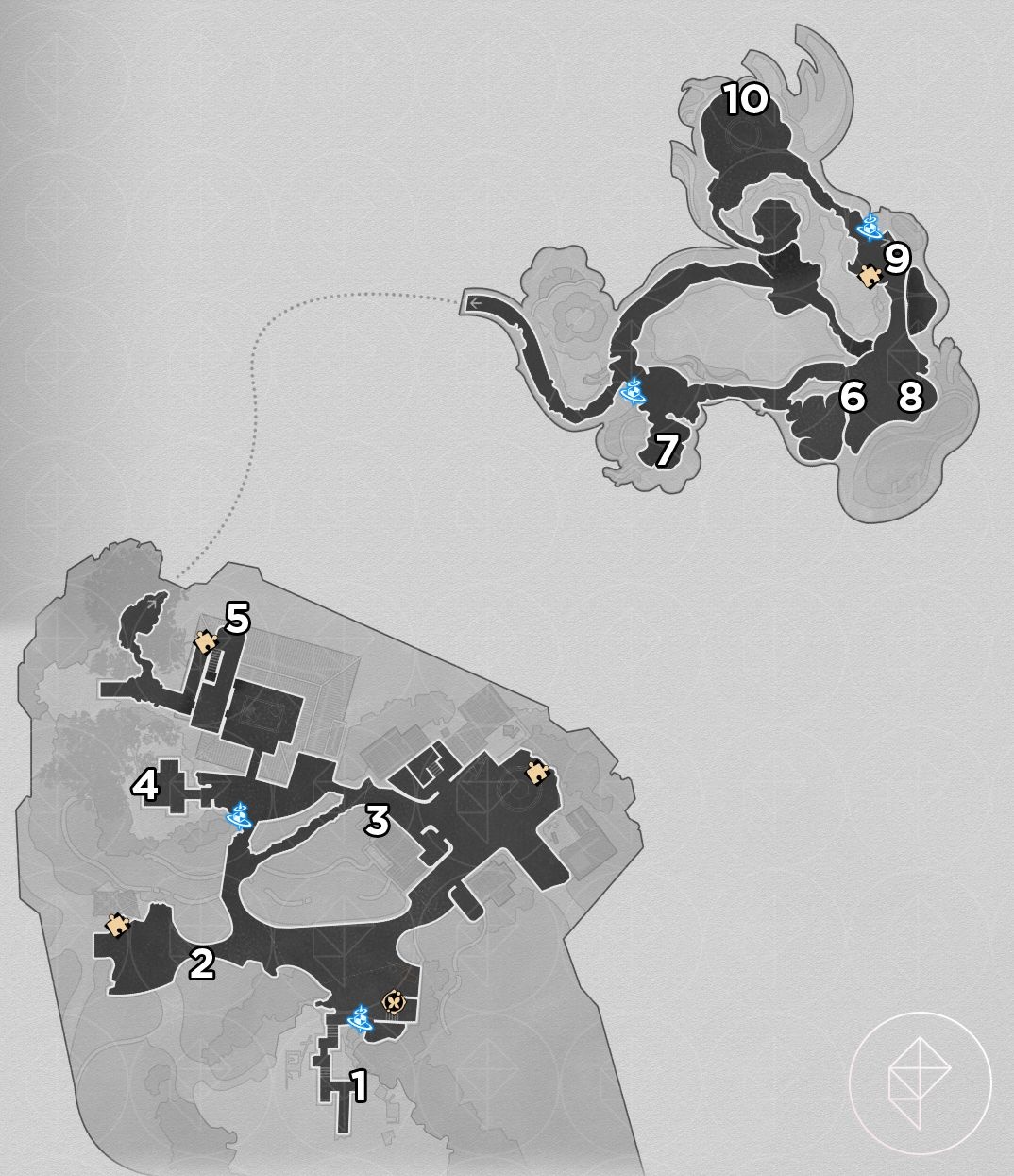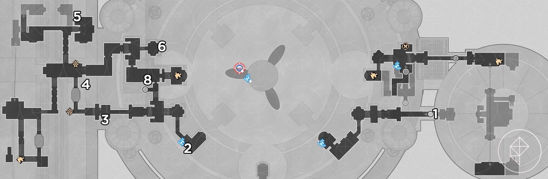 W tej strefie znajdziesz 20 nymph przedstawionych jako czerwono-pomarańczowe chrząszcze. Po zebraniu dostaniesz tekst od Aglaea, Stellar Jade, Celestial Ambrosia oraz przedmiot kluczowy, który podpowie, jak rozwiązać zagadkę na B1 (przejdź do środka okrągłego pomieszczenia o świcie i poprawnie odpowiedz nymphowi).