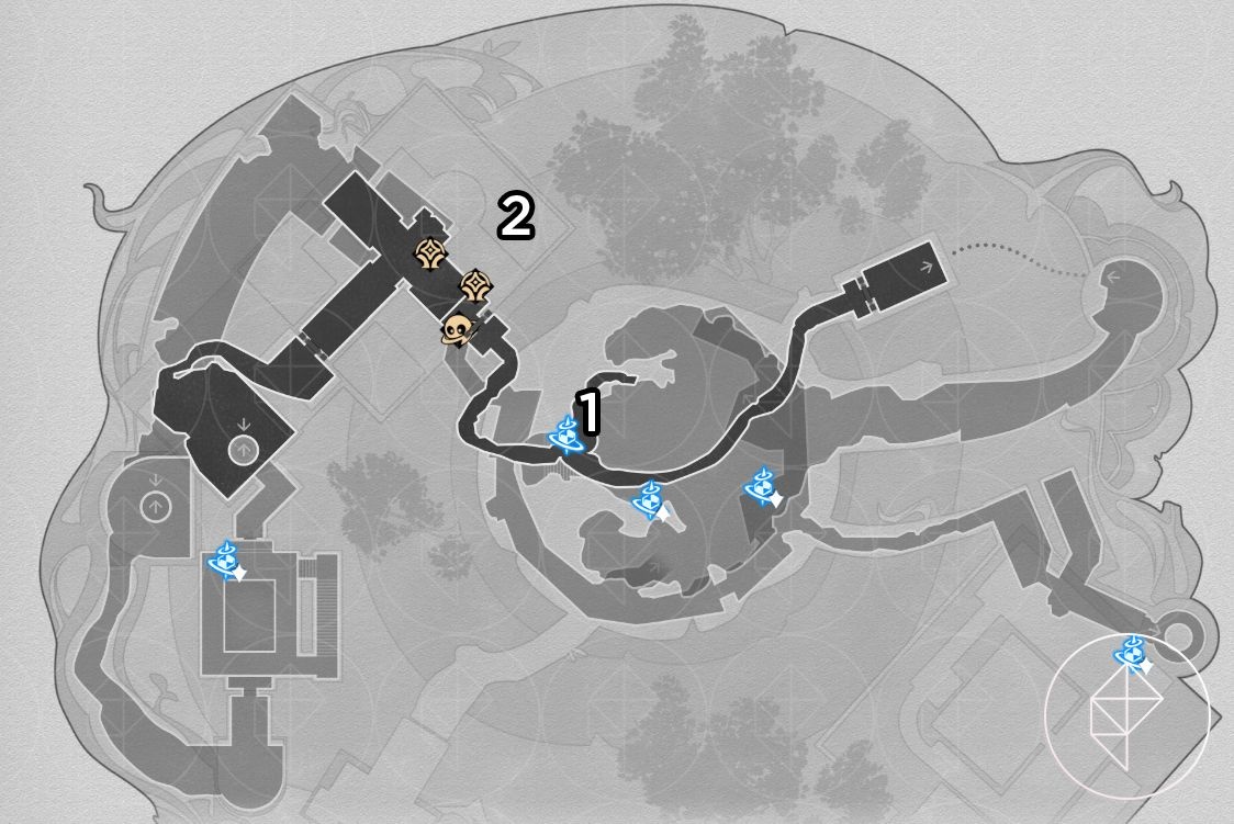 Na tej mapie jest 20 nymph (blado-niebiesko-zielone). Po zebraniu dostaniesz Stellar Jade, Disorder Ambrosia i przedmiot „Portentous Goldwoven: Radiant Scarwood”. Zagadką do skrzyni jest wykorzystanie Bartholosa, by utworzyć znak nieskończoności między maskami — to odblokowuje skrzynię i osiągnięcie „Tajemnica Ćwierkania: Mądrość w Uwięzieniu”.
