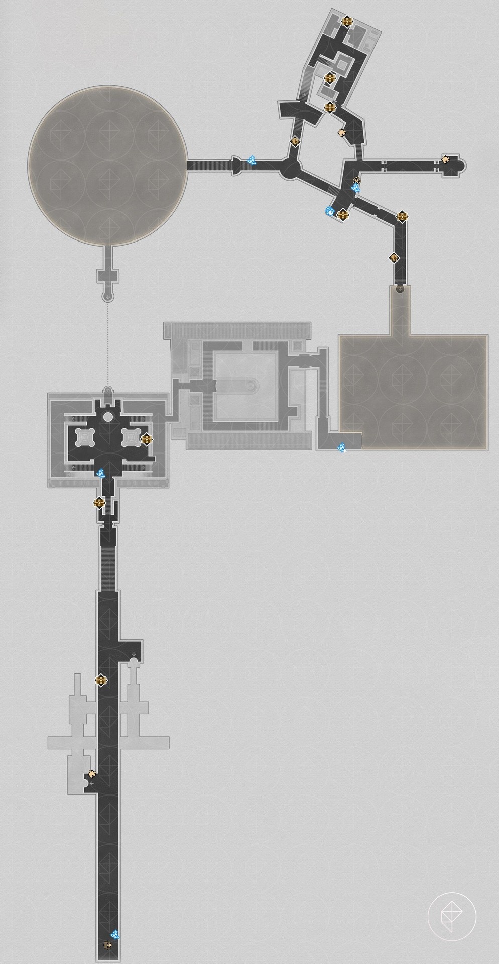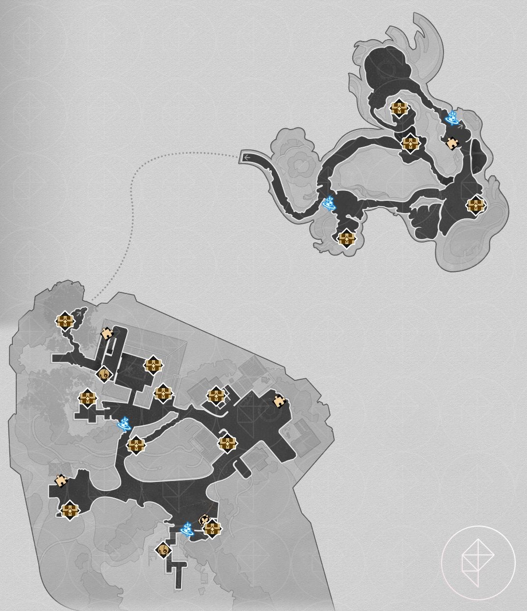 Dodane w 3.6. Część ścieżek została skondensowana na mapie. W północno-wschodnim pokoju musisz użyć portalu, aby przemienić się w Bartholosa i zatkać wyloty wody — to obniży poziom i odsłoni skrzynie.