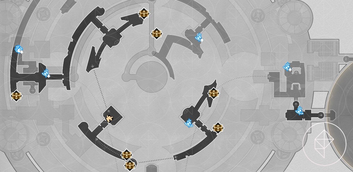Dodane w 3.3. Kilka Spirithiefów tu nie kradnie skrzyń, lecz ukryte przejścia lub mechanizmy. Sprawdź wszystkie piętra B2, B1 oraz F1–F3, a także sekrety w 3D-roomach.