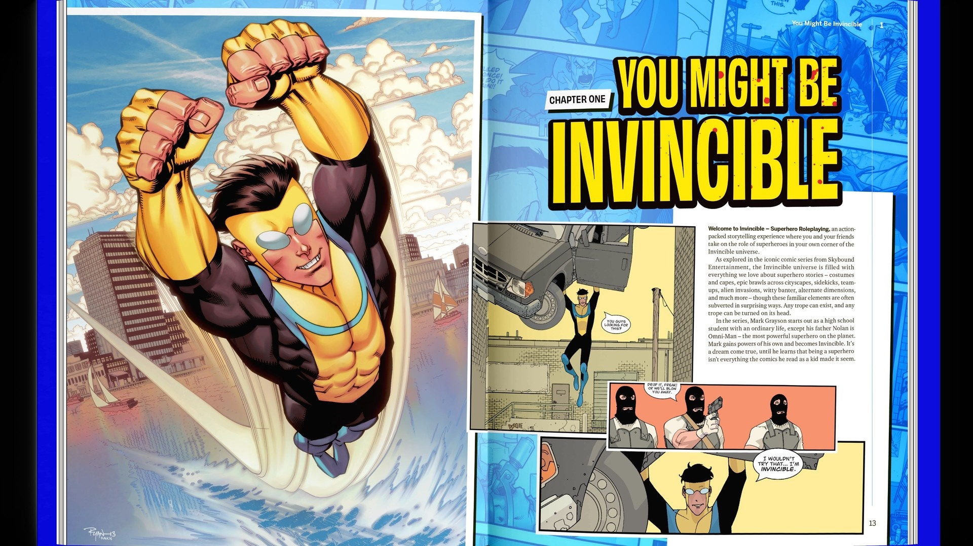 Już teraz dostępny jest darmowy quickstart, który pozwala przetestować system i jego klimat. Materiał zaczyna się po wydarzeniach, gdy Omni-Man zabija członków Guardians of the Globe, rani Invincible, a potem ucieka z Ziemi. W rezultacie świat zostaje bez najpotężniejszych obrońców.