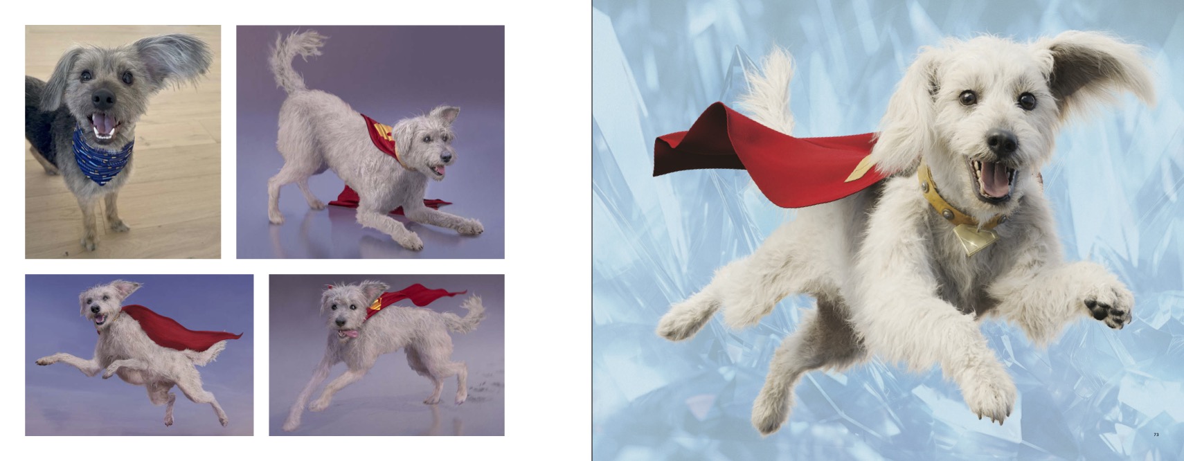 Dalej dodaje, że prace nad symulacją peleryny wymagały sporo precyzji, by zachować podobną jakość i fałdy materiału, jakie ma Superman, mimo zupełnie innego ułożenia i działania sił grawitacji na psim grzbiecie.