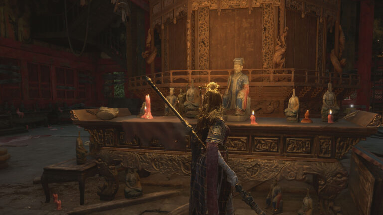 Aby użyć Divine Gifts lub ich fragmentów, udaj się do konkretnego posągu w Shu Sanctum, który znajduje się w głównym budynku, na górze schodów. Tam spotkasz Qiao Ying stojącą przed ołtarzem z figurą trzymającą laskę.