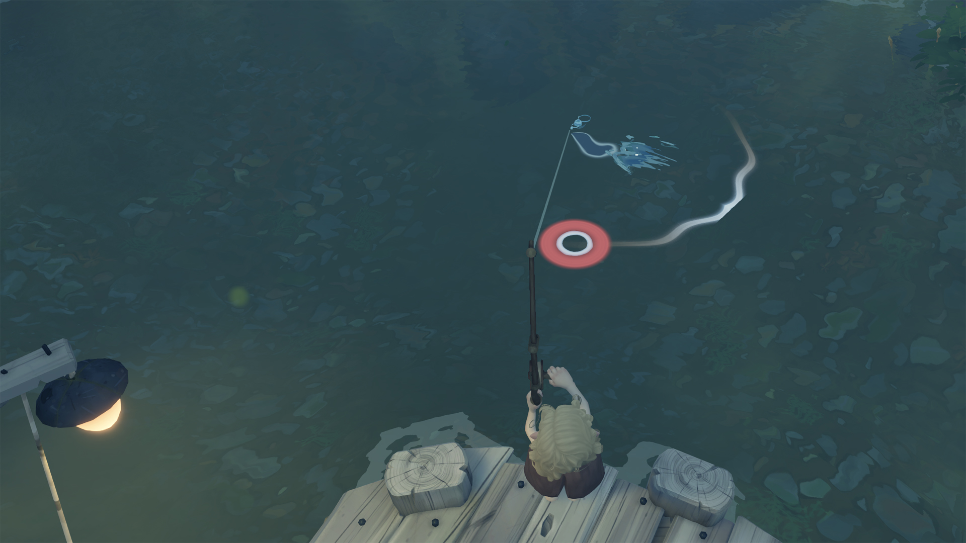 Ryby nie dadzą się złapać bez walki. Gdy ryba próbuje uciec na północ, ty przeciągnij linkę na południe, używając odpowiedniego przycisku ruchu. Obserwuj biały okrąg na ekranie – gdy robi się pomarańczowy, a potem czerwony, oznacza to, że lina jest napięta. Jeśli zostanie zbyt długo na czerwono, lina pęknie, a ryba ucieknie.