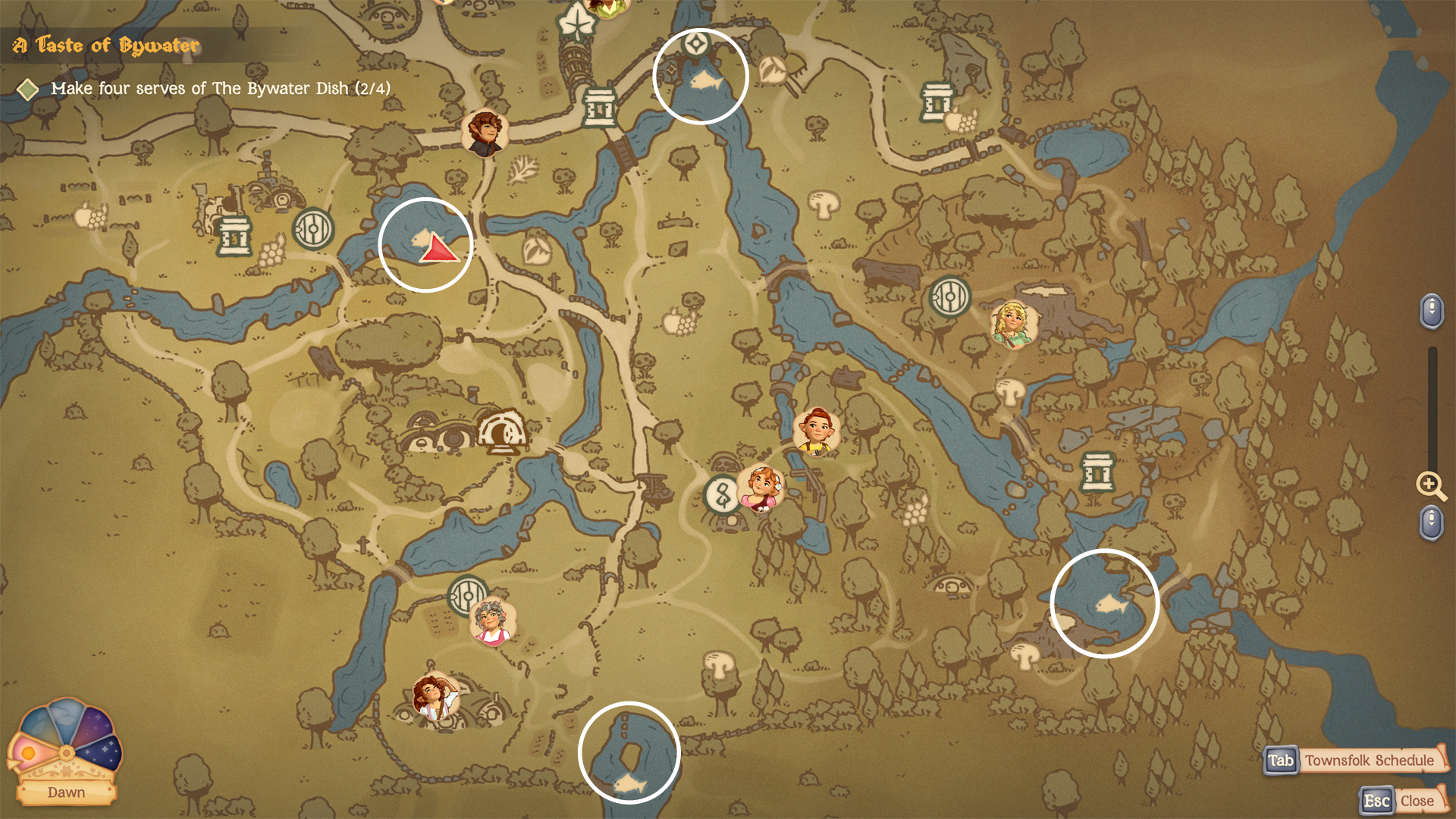 Po odwiedzeniu miejsca łowienia pojawi się ono na twojej mapie. Na początku gry masz dostęp do kilku podstawowych miejsc: