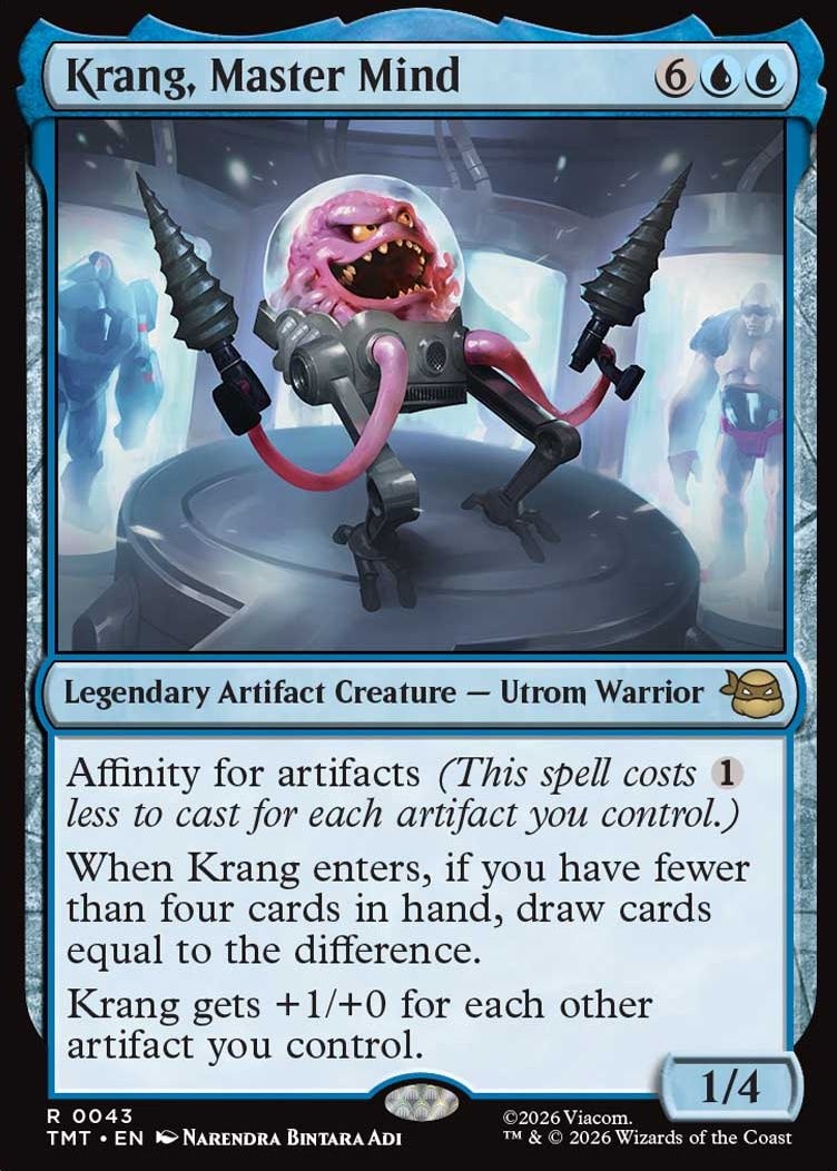 Set Teenage Mutant Ninja Turtles ma premierę 6 marca 2026. Krang, Master Mind oferuje kombinację dobierania kart i dużego ciała przy jednoczesnym wykorzystaniu Affinity for artifacts. Dlatego, *jeśli* gracze dobrze zintegrują nowe karty z istniejącymi buildami, Affinity może stać się bardziej stabilnym wyborem w Modernie.