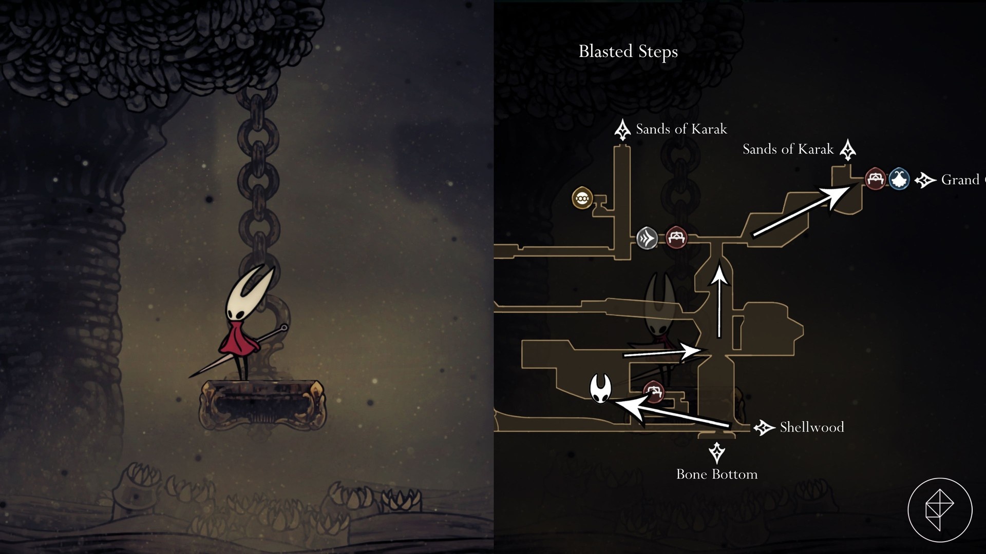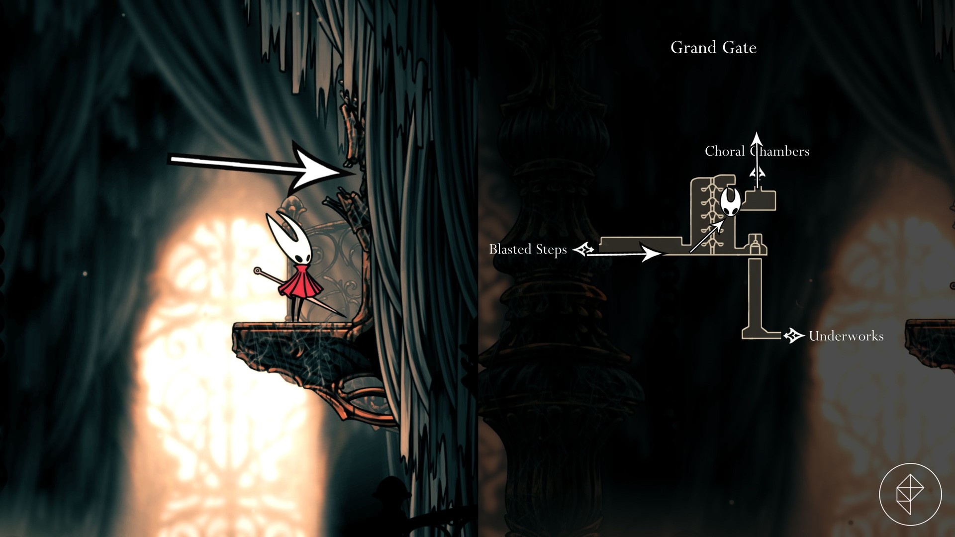 - Wyjdź prawym górnym wyjściem do dużej pionowej komnaty, a stamtąd znów przez prawe górne wyjście do Grand Gate.