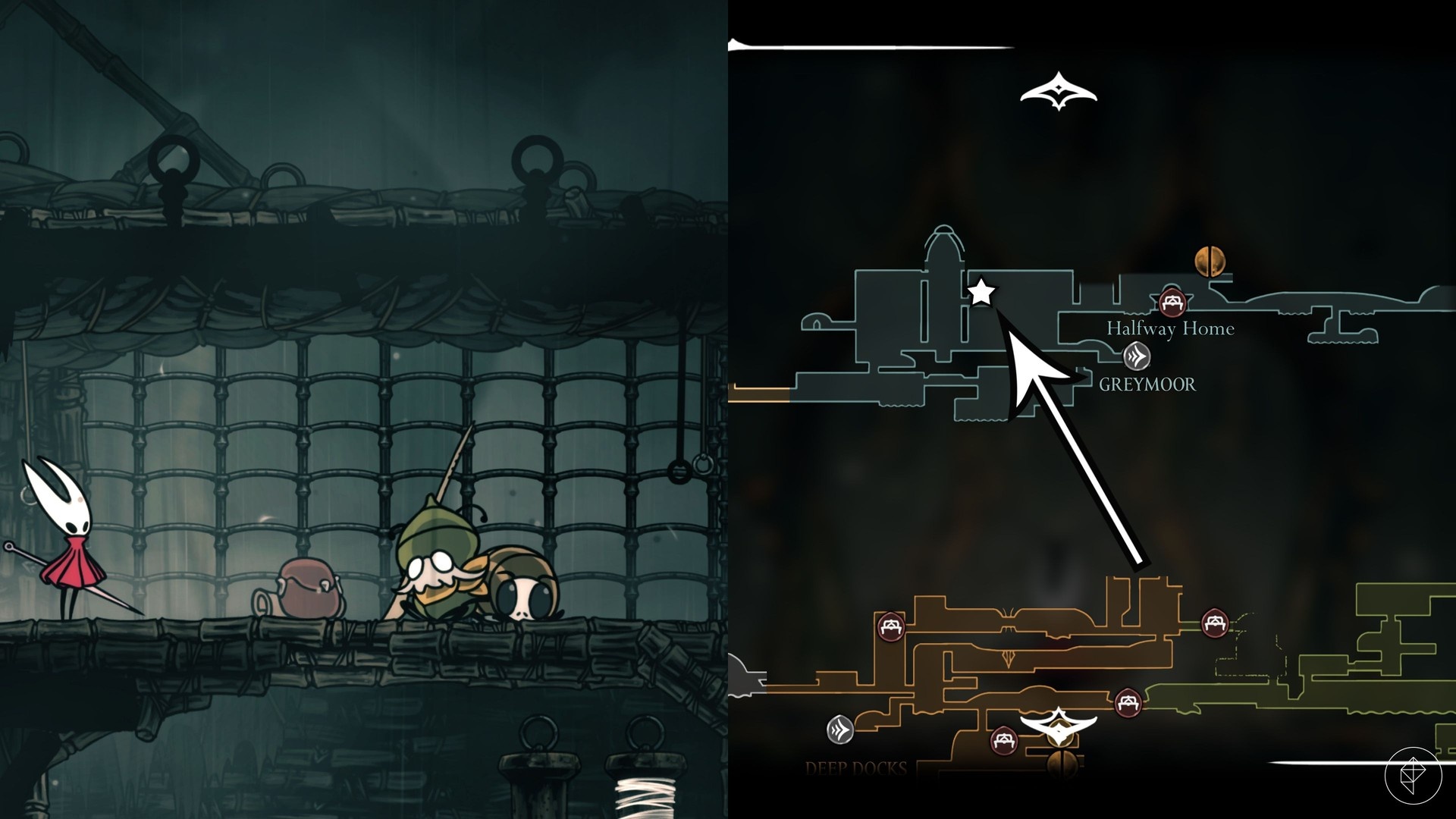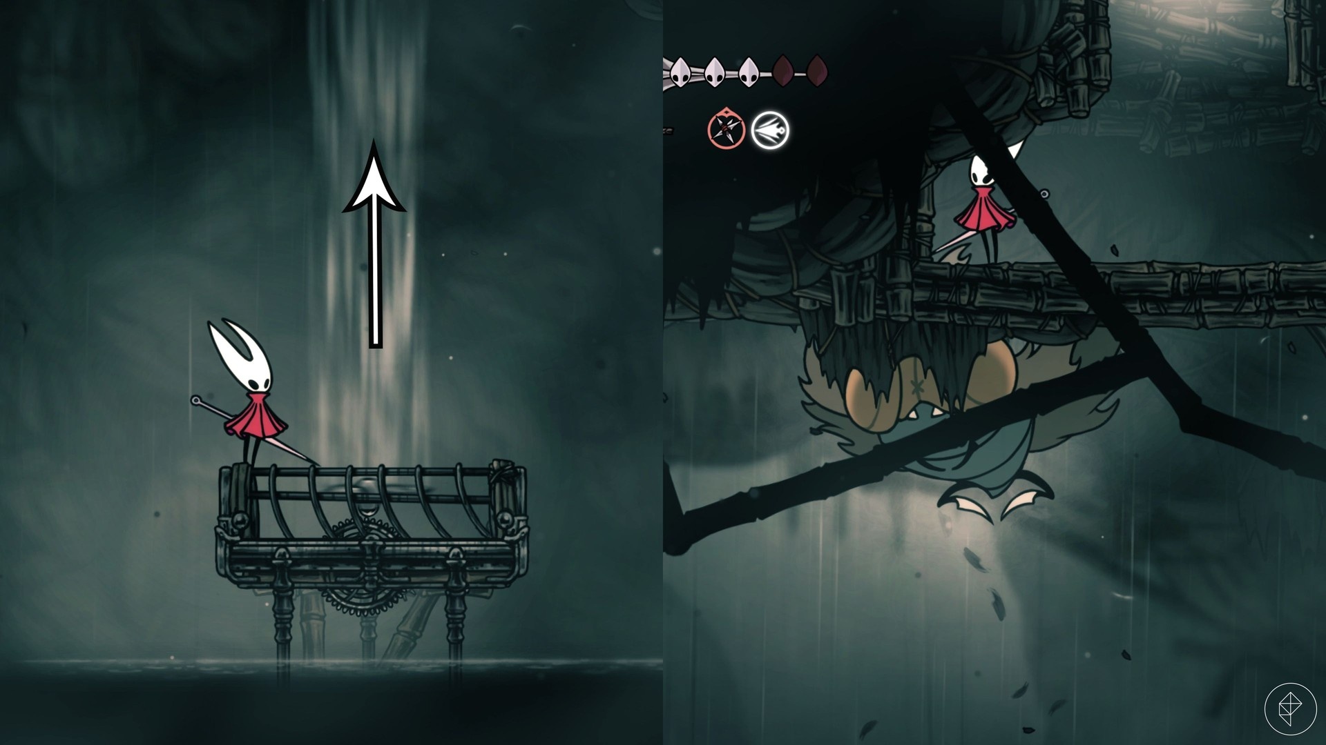 Po odebraniu cresta wróć na arenę i wywołaj pojawienie się Moorwinga. Potem szybko pobiegnij w prawo i użyj prądu powietrza, by wrócić do miejsca, z którego wchodziłeś — Moorwing poleci tam za tobą. Stój w narożniku poniżej wejścia, wykonaj atak w dół przez podłogę i trafiaj bossa, podczas gdy on nie może cię dosięgnąć. Pamiętaj, by skakać i atakować od razu, bo okno do zadawania obrażeń jest krótkie. Uważaj też, żeby nie przeskoczyć przez szczelinę w prawym górnym rogu, bo to zresetuje walkę.