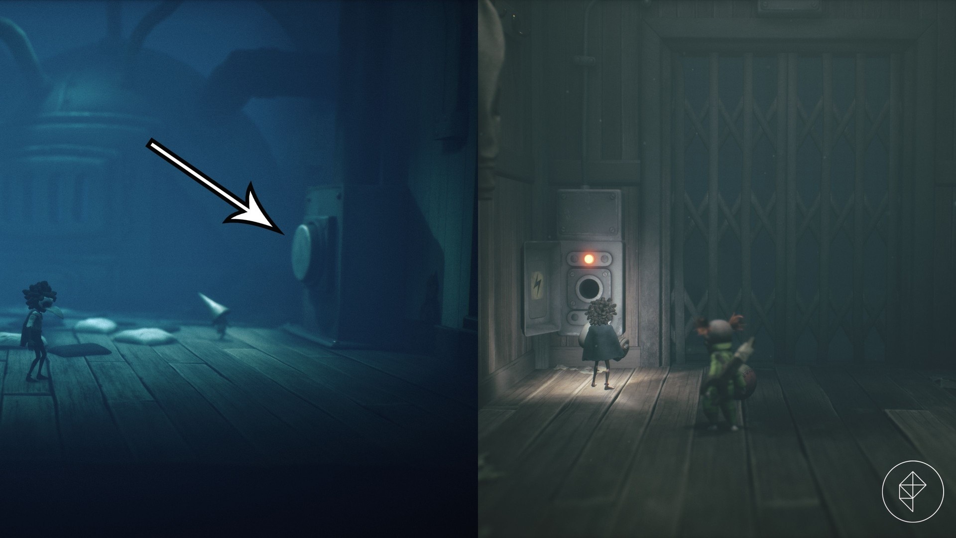 Winda zabierze cię w górę do kolejnej zagadki z przyciskami w Little Nightmares 3. To wszystko, czego potrzebujesz, aby przejść tę część Carnevale: skrzat → przycisk → żarówka → winda.