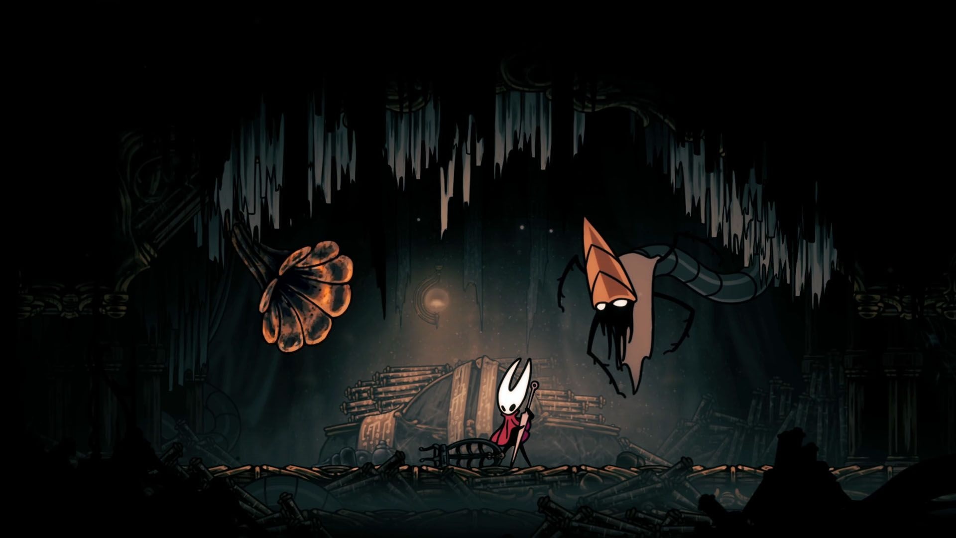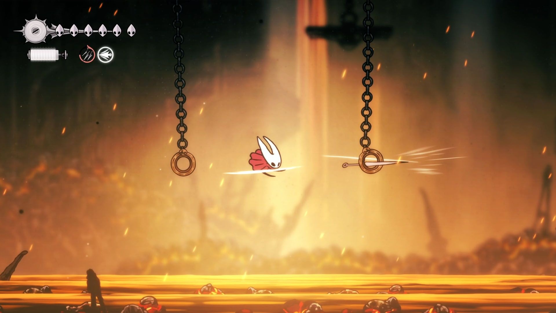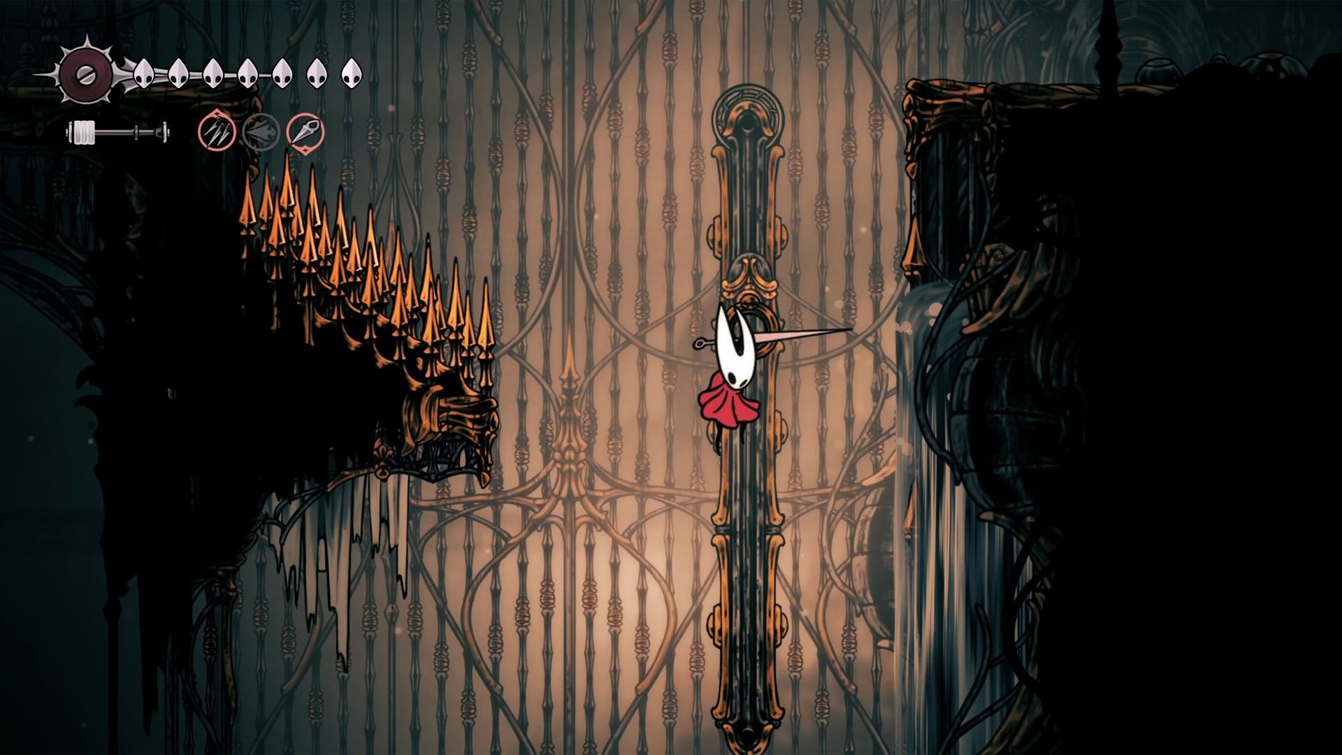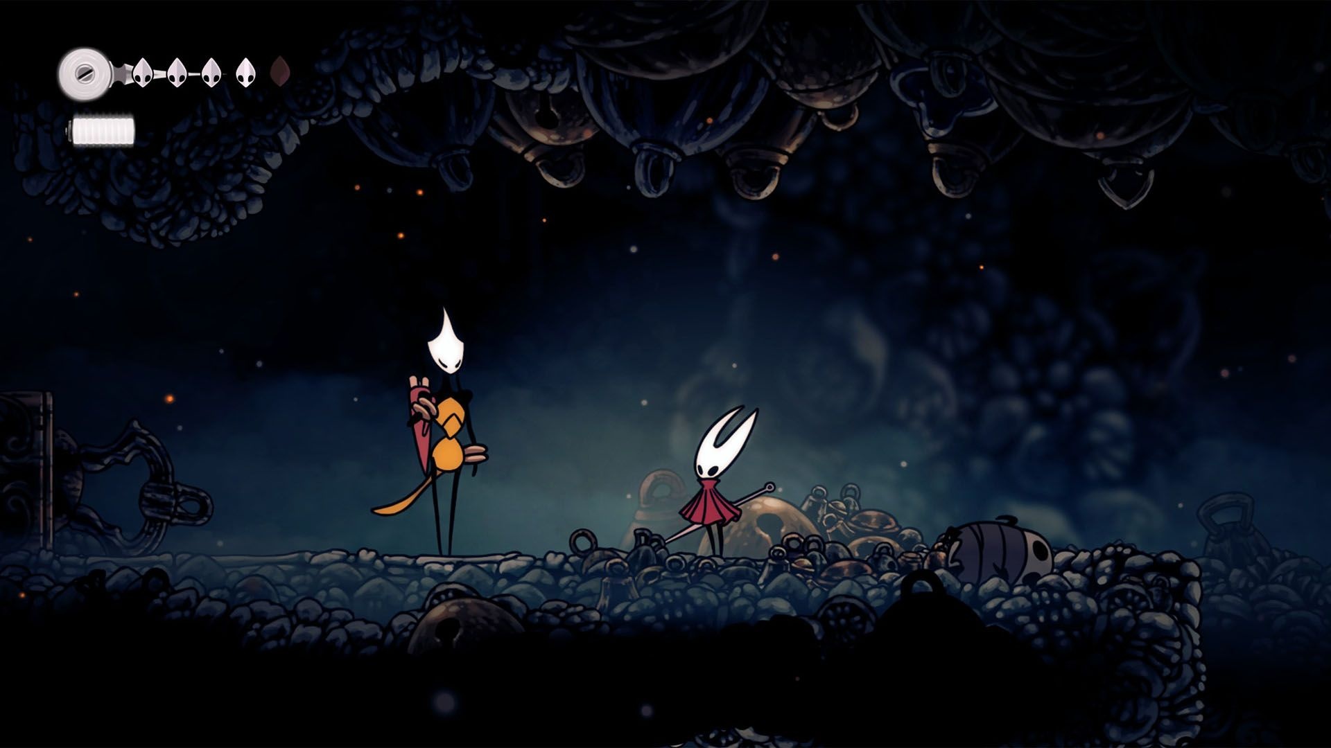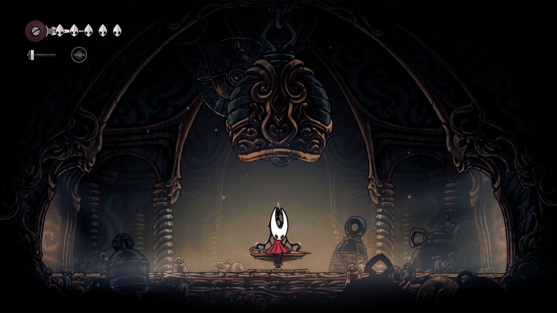 - Pokonać kilka wymaganych bossów: Moss Mother, Bell Beast (uwolniony), Moorwing lub zebrać 5 fleas, Sister Splinter, Widow, Last Judge, Lace i finalnie Grandmother Silk.