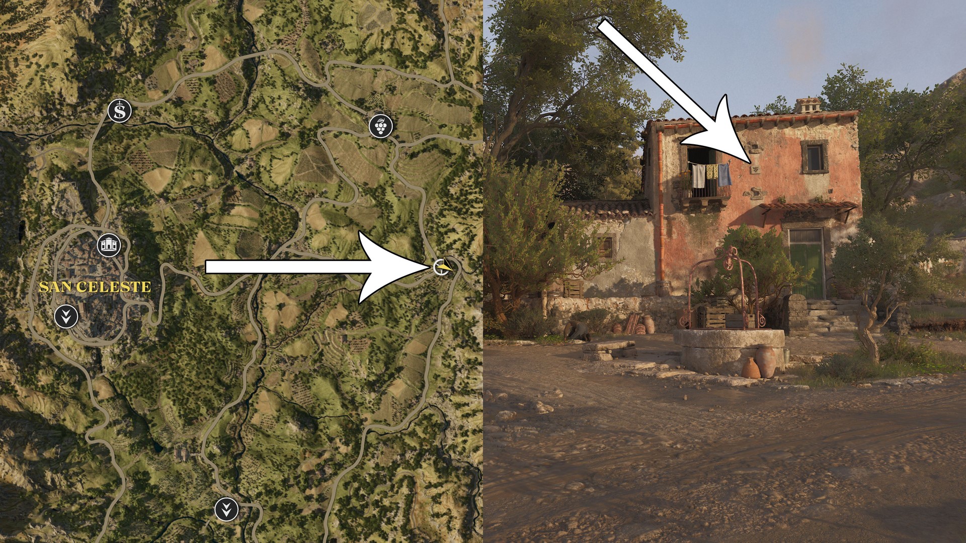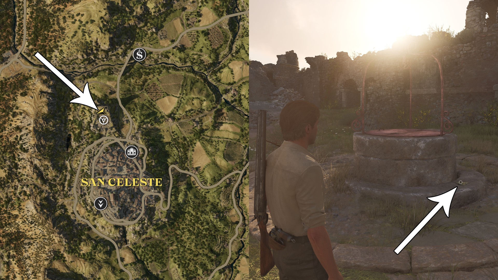 - W starej ruinie tuż na północ od San Celeste, na ziemi obok studni.