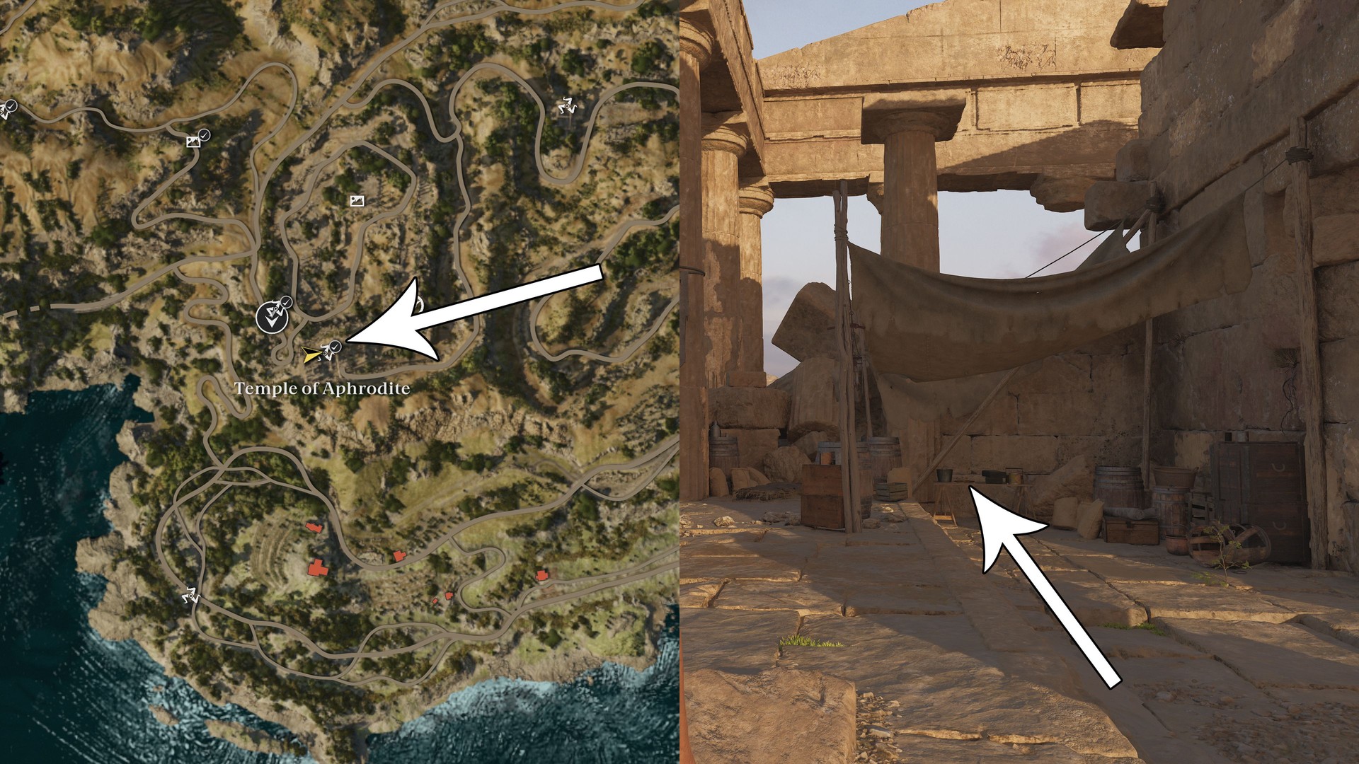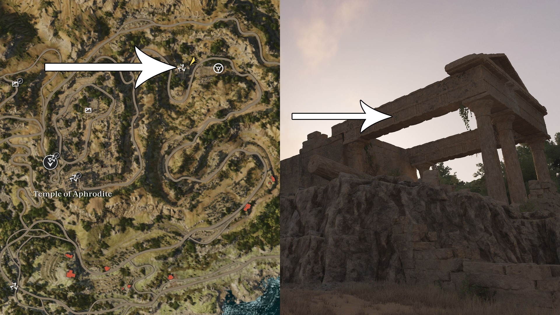 - Na filarze bezpośrednio na północ od punktu szybkiej podróży przy Temple of Aphrodite.
