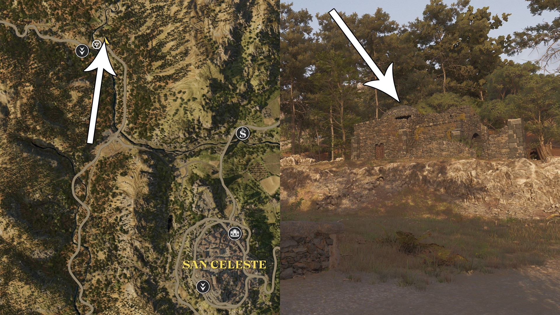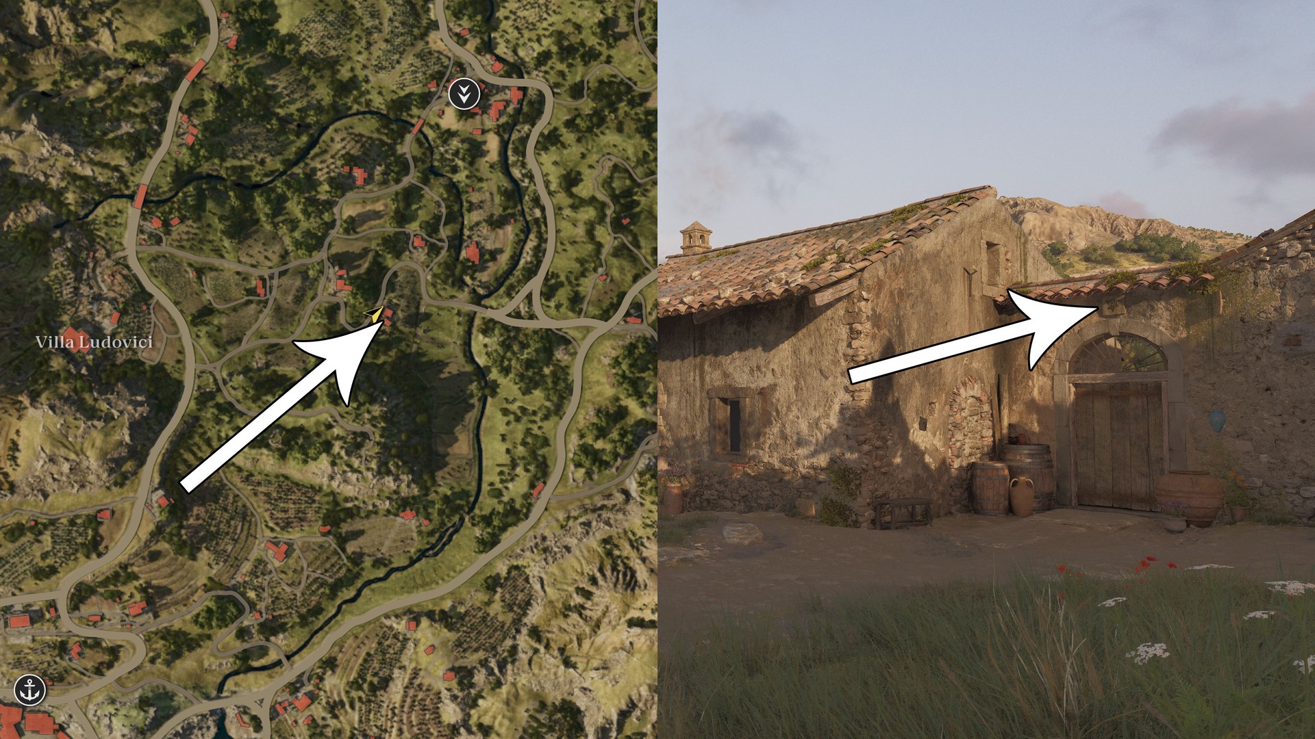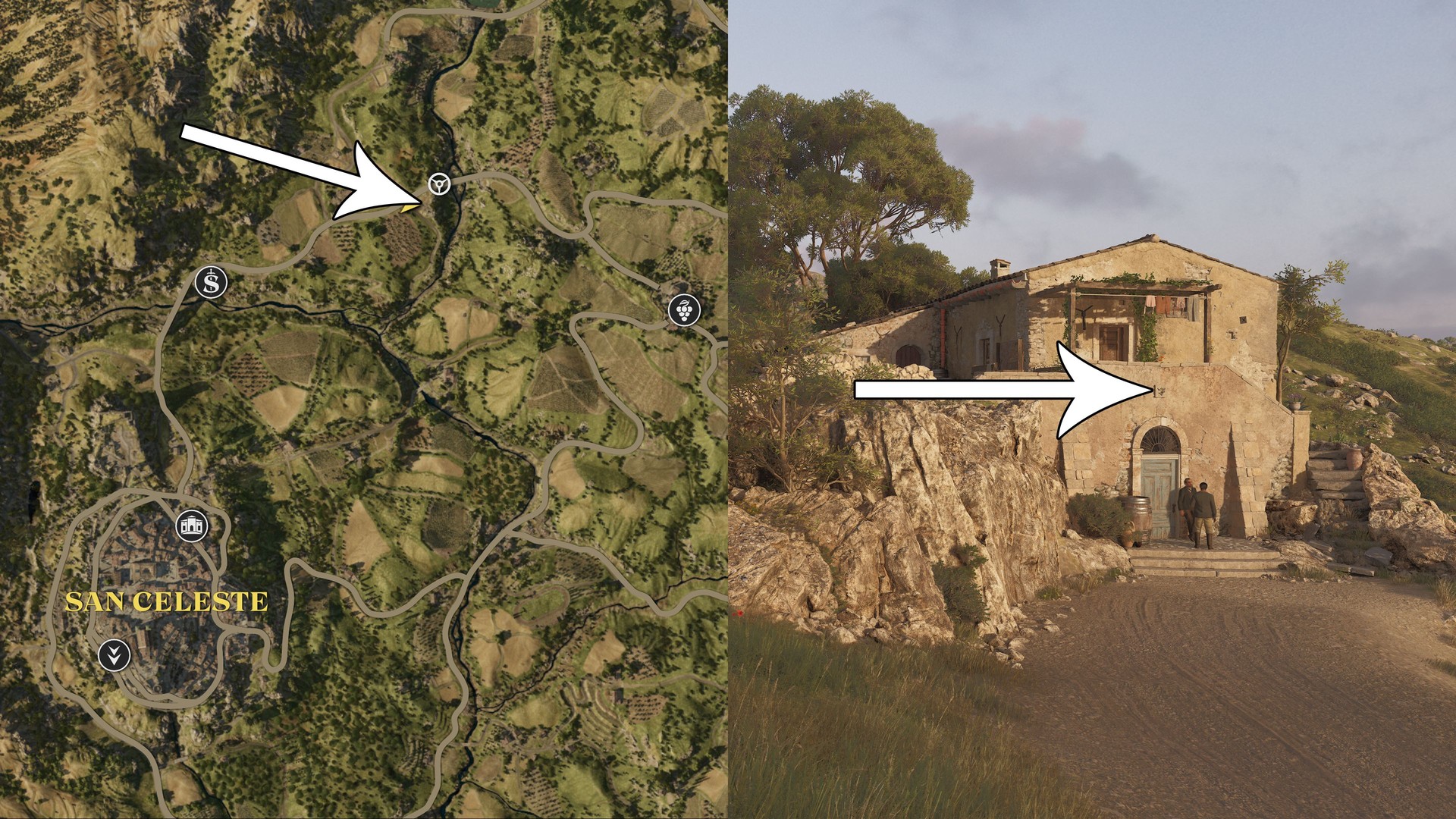 - Chapter 5 – Vendetta d’onore: Po przejściu przez ogród Ludovici (za pierwszą bramą) wejdź do małego domu po lewej przy drugiej bramie — na stole wewnątrz.