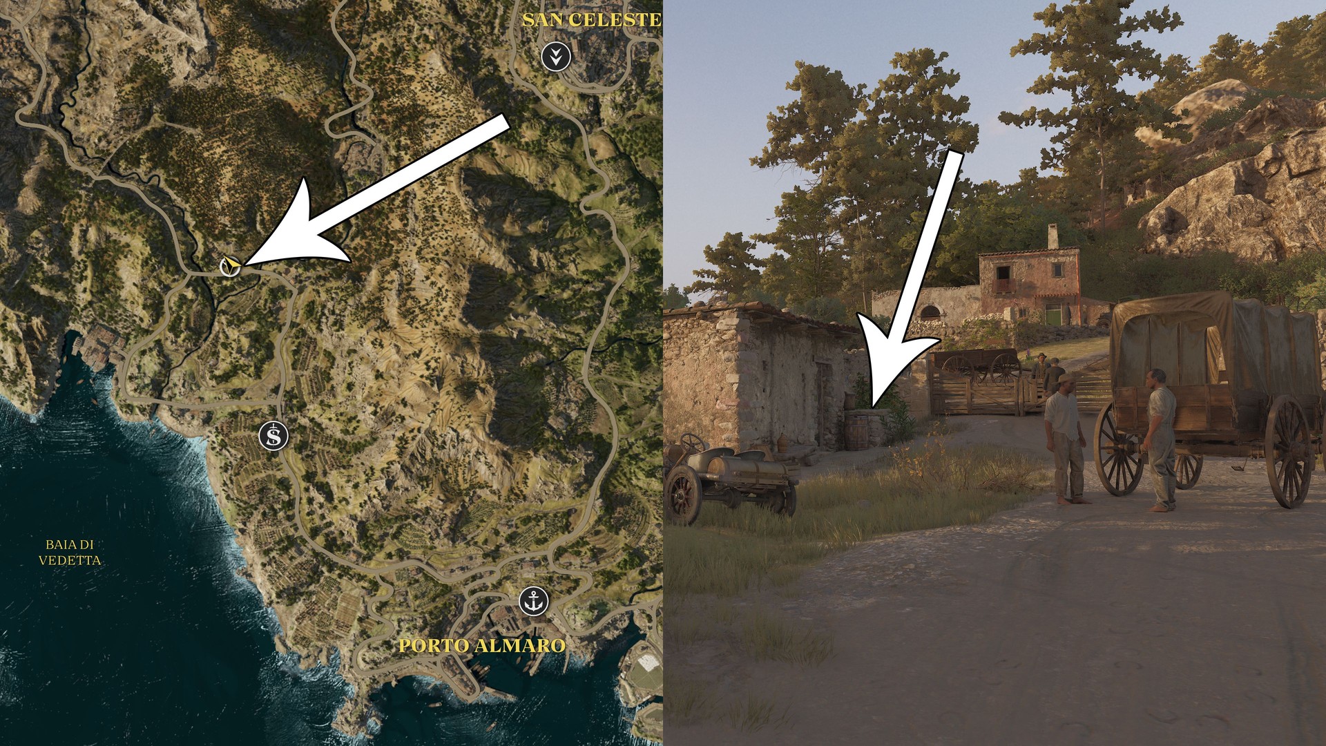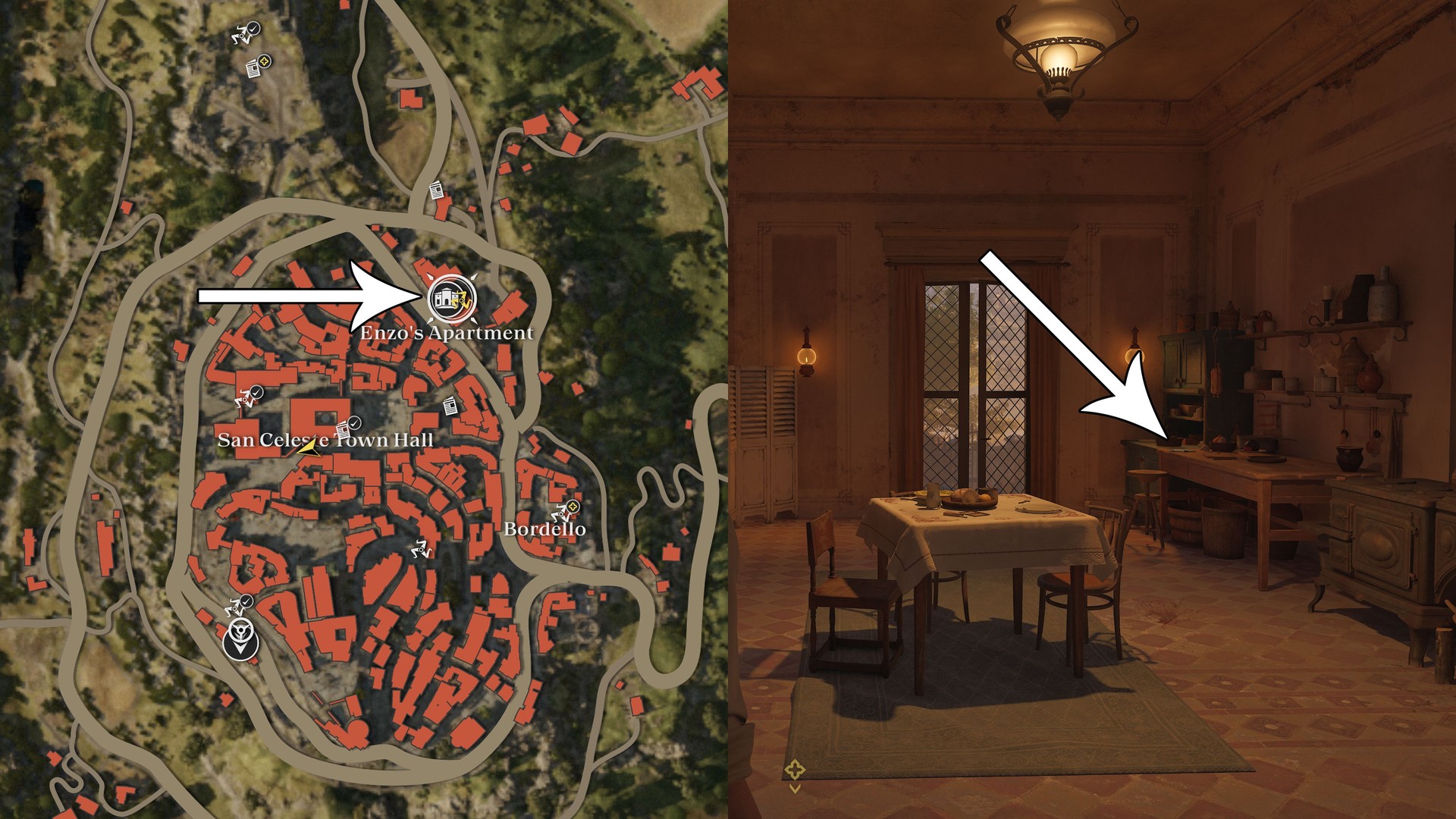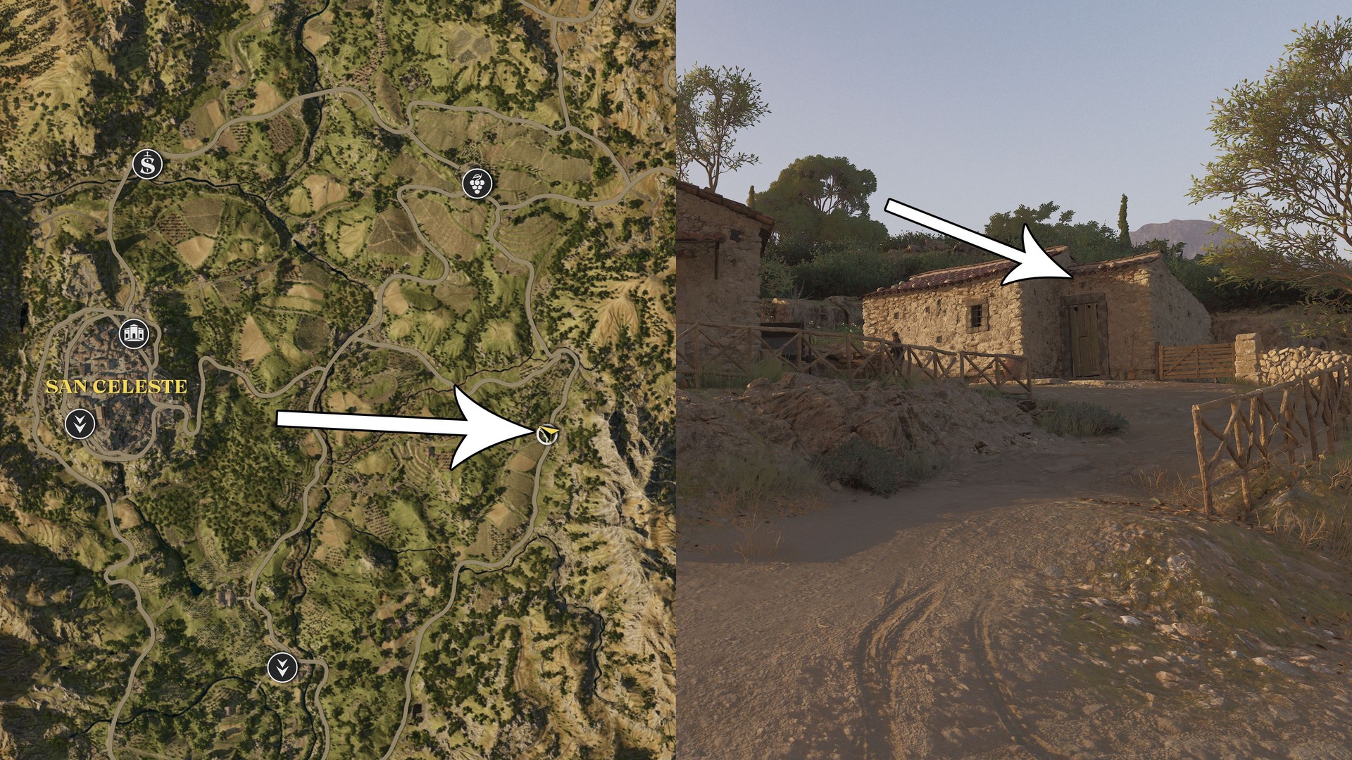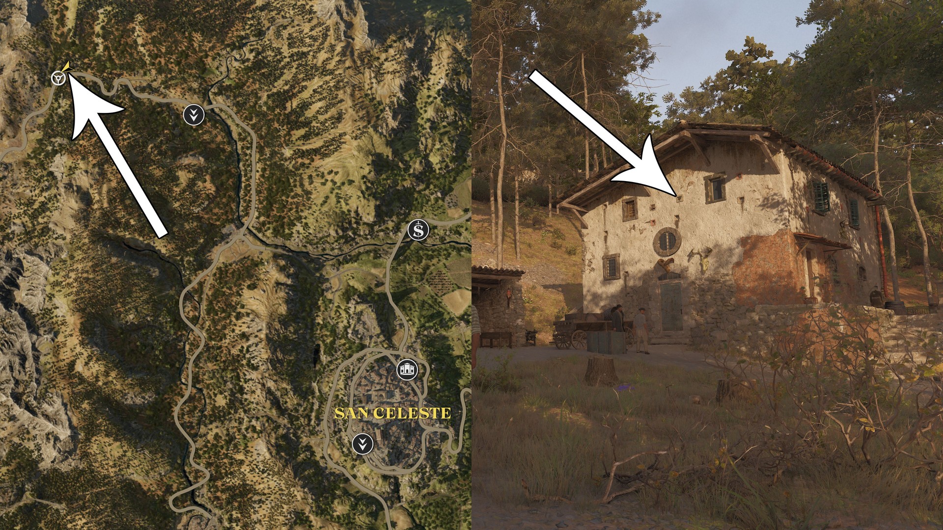 - Chapter 5 – Vendetta d’onore: Po przejściu przez ogród Ludovici (za pierwszą bramą) wejdź do małego domu po lewej przy drugiej bramie — na stole wewnątrz.