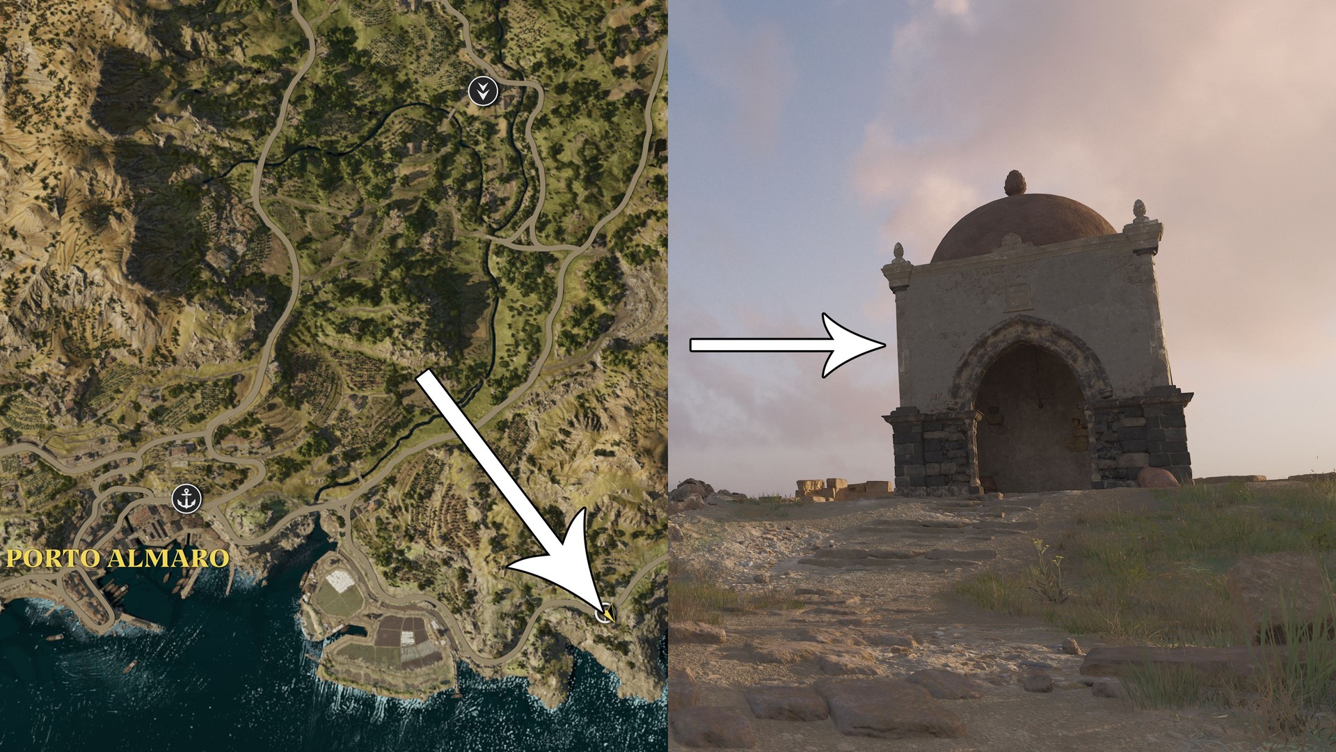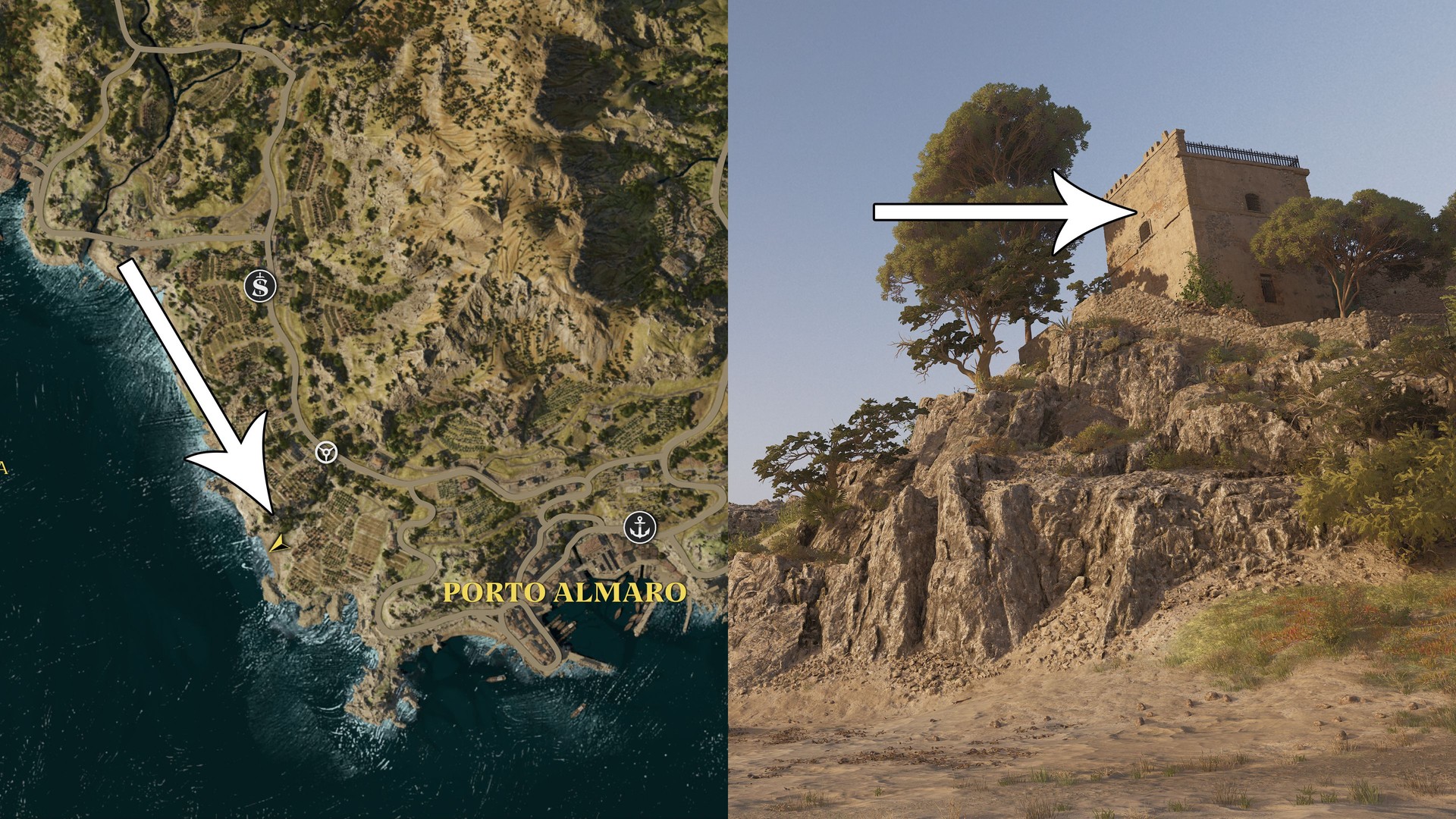 - W Porto Almaro: wejdź w wąskie schody od strony północno-zachodniej miasta, potem wspinaj się na ruinę na wzgórzu.