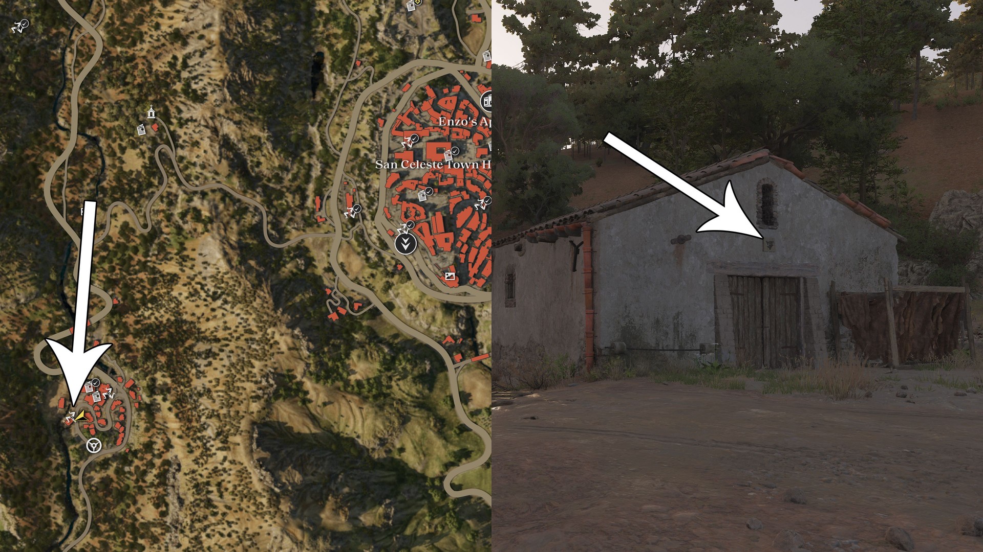 - Na farmie na północny wschód od Pasquale’s Store. Podejdź do drzwi frontowych, potem spójrz w lewo.