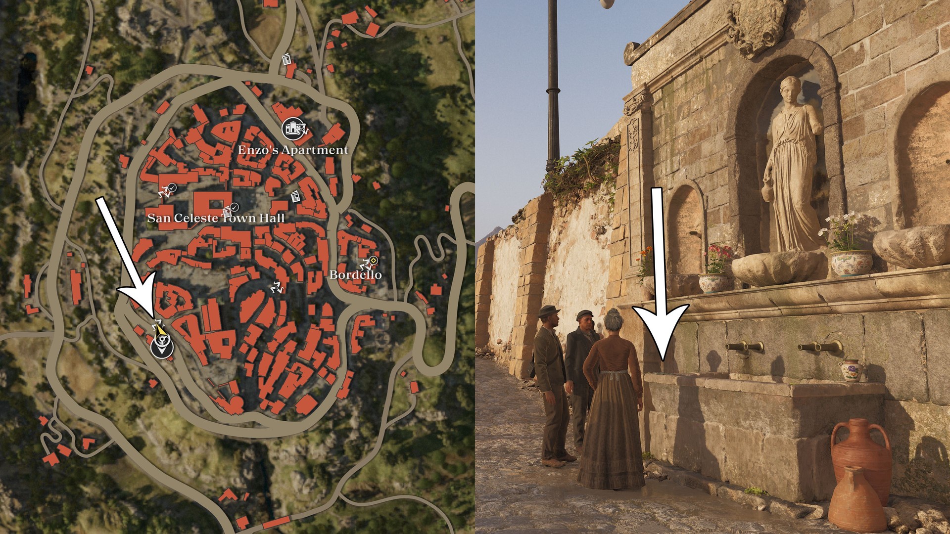 - Chapter 13 – Capiregime: Walcząc ze Spadarami (bezpośrednio po spotkaniu z Tino): na starej ścianie po drugiej stronie placu.