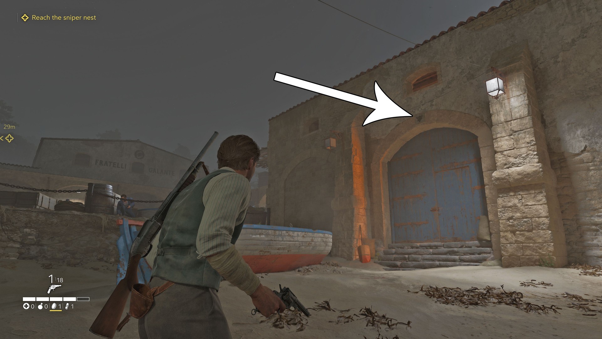- Chapter 11 – Mattanza: Podczas ucieczki z Donem Torrisi: po wejściu przez drzwi spotkasz Leo i zadanie z gniazdem snajperskim — Trinacria nad tamtymi drzwiami.