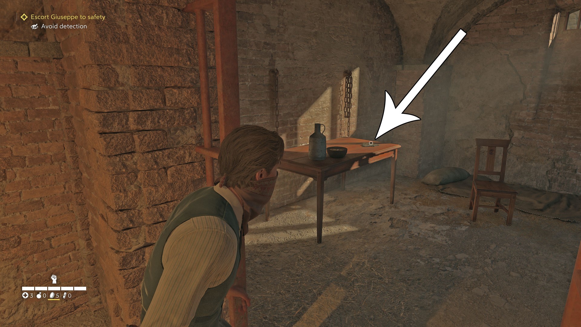 - Chapter 7 – Spirito Sportivo: Podczas skradania przez burdel, tuż przed Marquisem: przejdziesz po dachu do pustego pokoju — na stole po lewej.