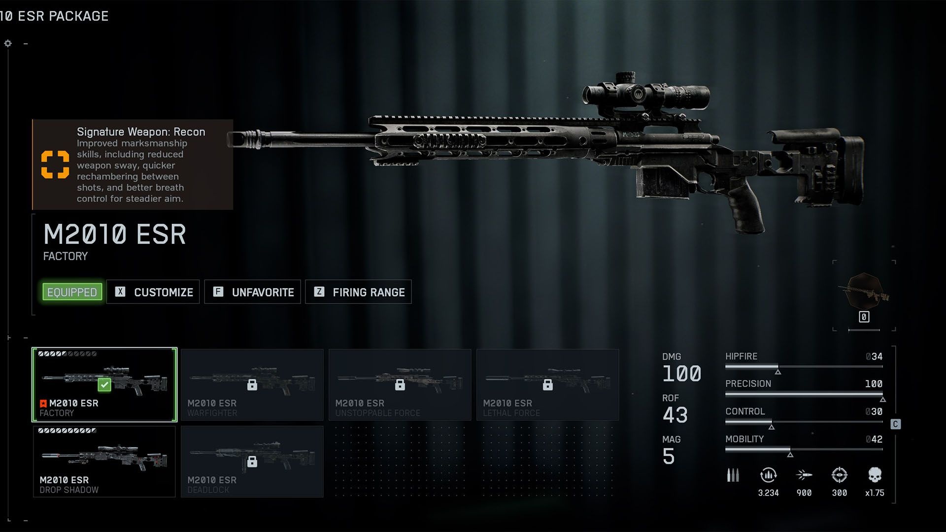 M2010 ESR to solidna opcja dla graczy preferujących spokojniejszy, dystansowy styl gry. Na start ma już 6x scope, co ułatwia zdobywanie zabójstw z jednego strzału na średnich i dłuższych dystansach.