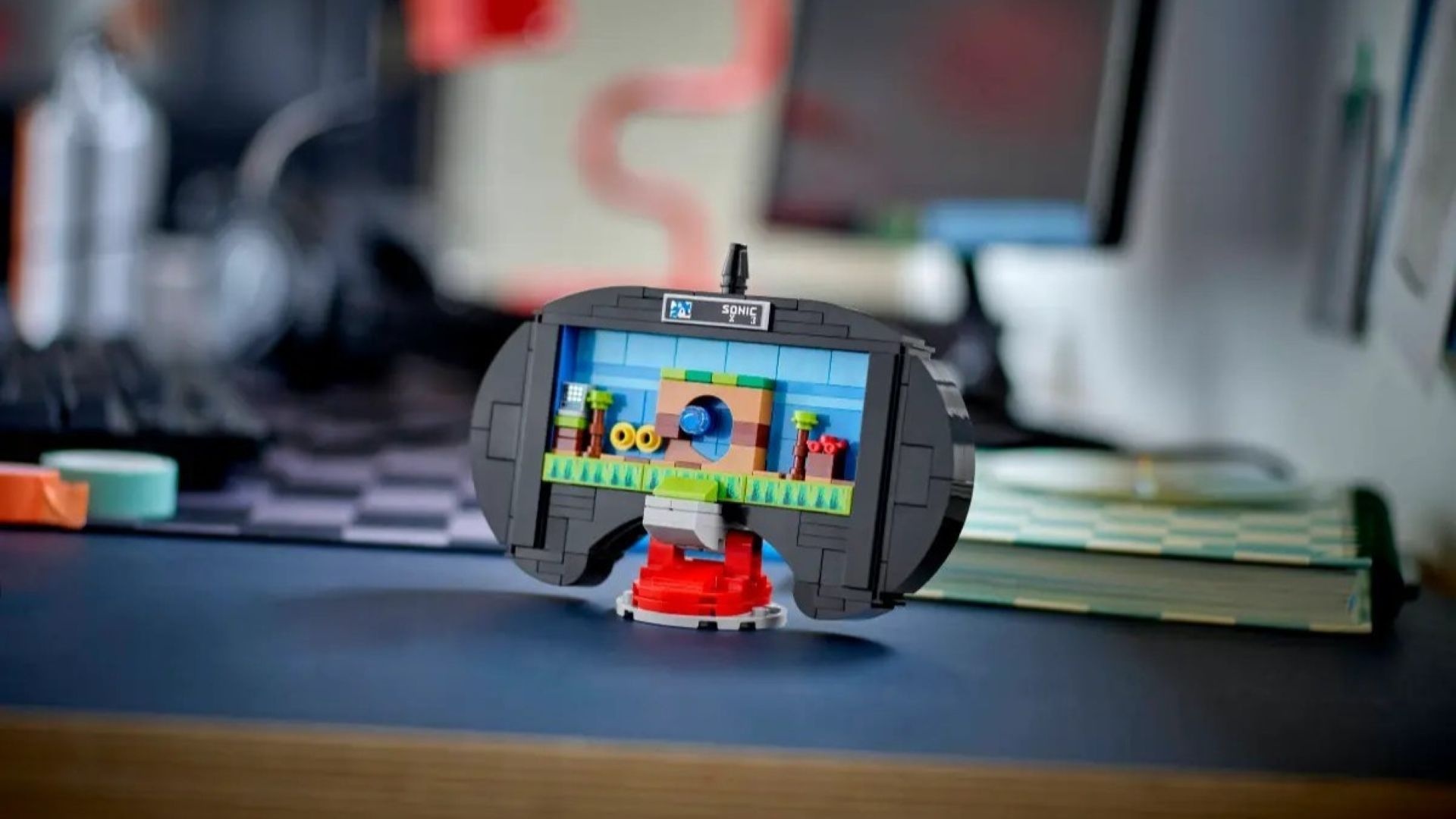 Złożony model ma dwie strony. Z przodu prezentuje się jak powiększony, «Lego-izowany» kontroler. Natomiast po odwróceniu pokazuje elementy scenografii z gry — w tym poziom Green Hill Zone z Sonic the Hedgehog.