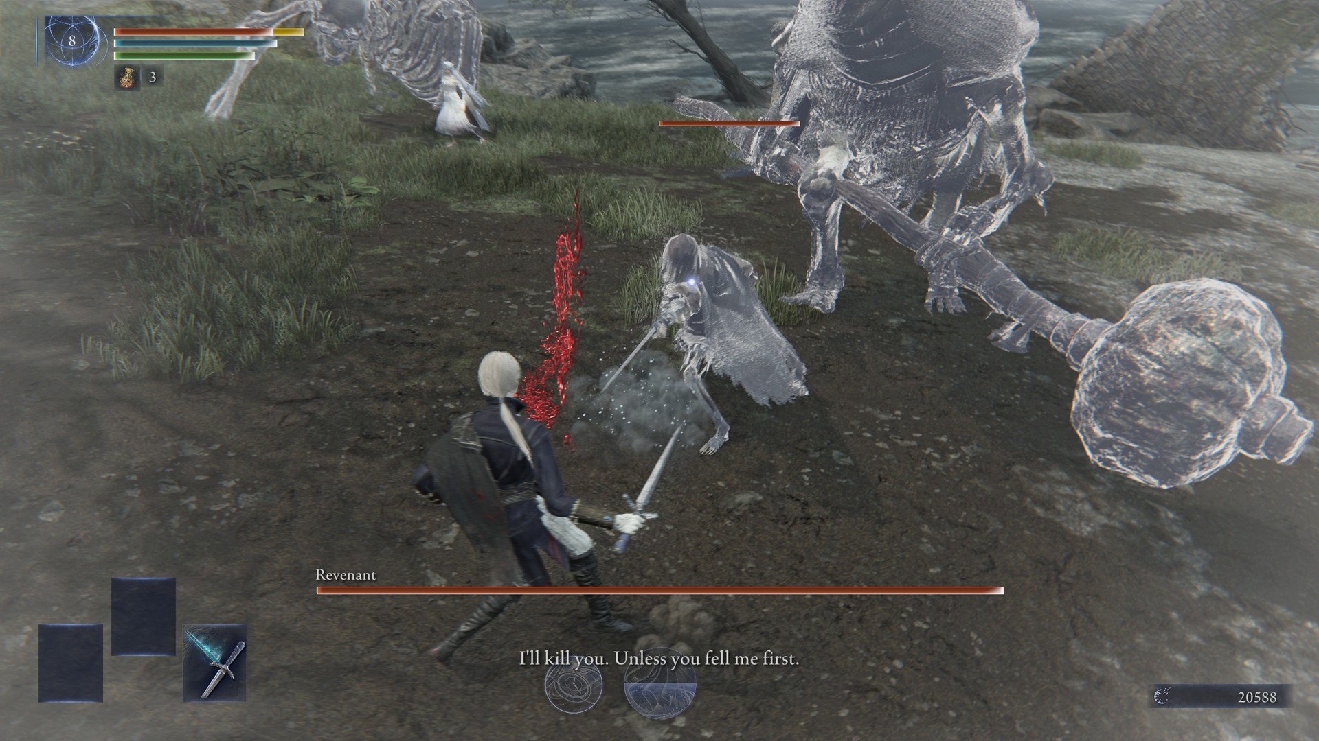 Revenant wyzywa cię na pojedynek, przyprowadzając trzech sojuszników: Helen, Fredericka i Sebastiana. Walka odbywa się na małej arenie, gdzie unikanie ataków czterech postaci jest bardzo trudne. Możesz od razu zaatakować Revenant, ale lepiej najpierw wyeliminować jej towarzyszy.