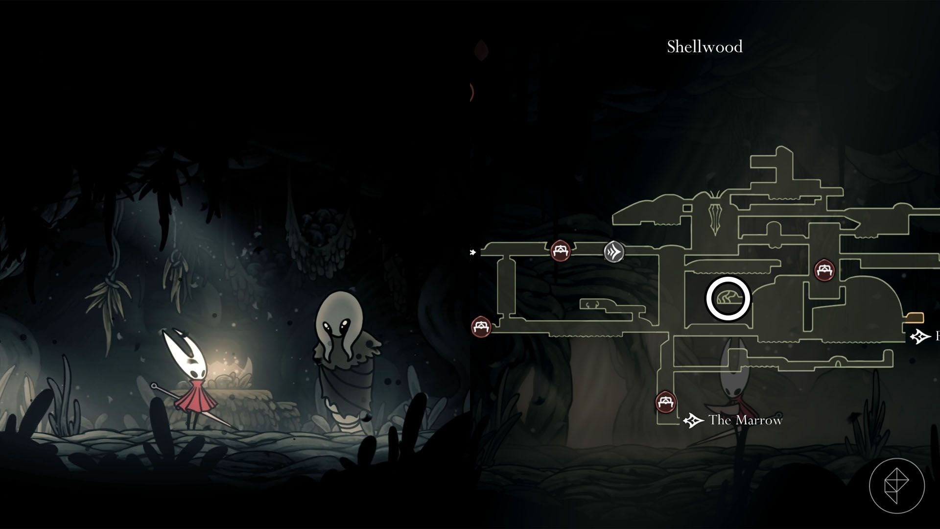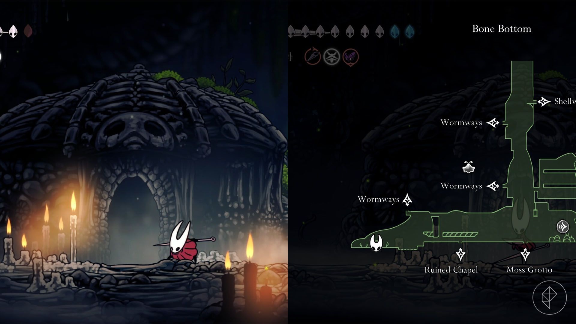 Jak odblokować: potrzeba umiejętności Silk Soar (odblokowana naturalnie w trakcie postępu Aktu 3). Po zdobyciu Silk Soar wróć do Ruined Chapel, przejdź po prawej od ławki do małego otworu w suficie, użyj super jump i przejdź przez przejście, aby otrzymać Shaman Crest.