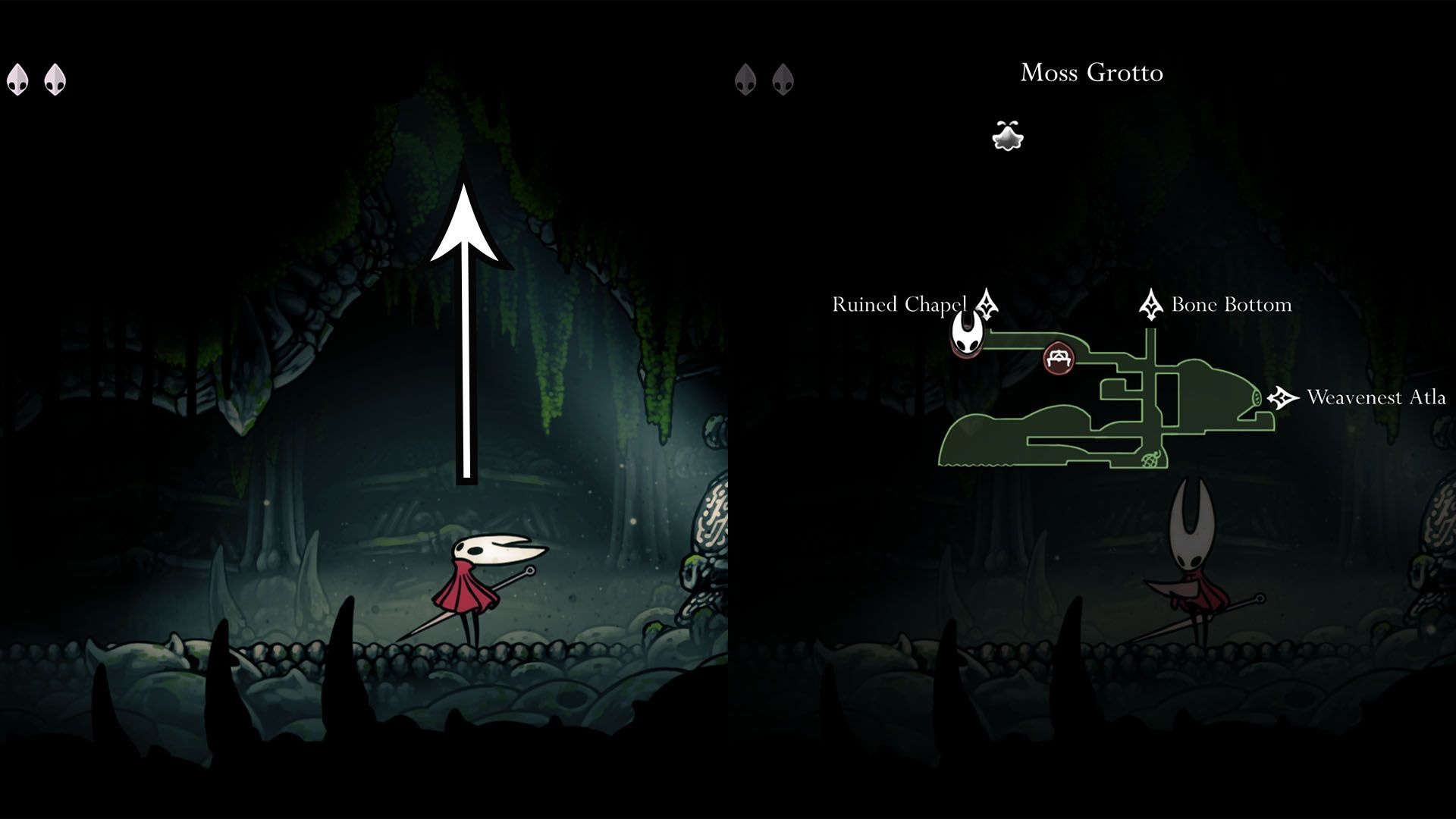 Jak odblokować/ulepszyć: odblokuj Needolin, a następnie w południowo‑wschodnim rogu Moss Grotto użyj Needolina przy drzwiach z twarzą weaver. Otwórz drzwi, uderz w trzy szpule jedwabiu, zjedź windą i porozmawiaj z Evą.