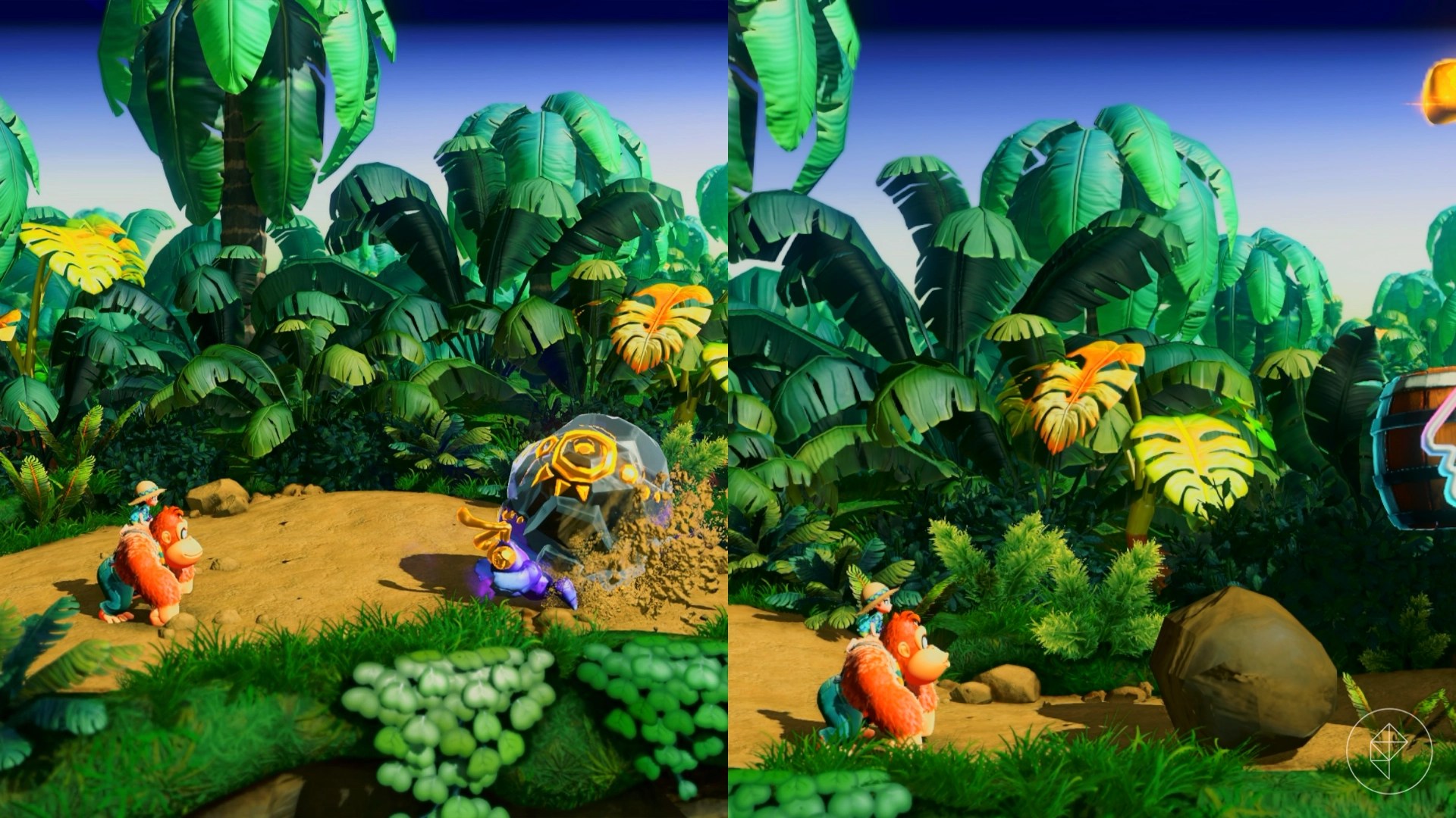 W Nostalgia Country czekają na Ciebie trzy Banandium Gems. Dwie z nich znajdziesz bez problemu podczas przechodzenia poziomu – jedna mniej więcej w połowie, a druga tuż przed końcem. Natomiast ta najtrudniejsza do zdobycia kryje się… zaraz na początku!