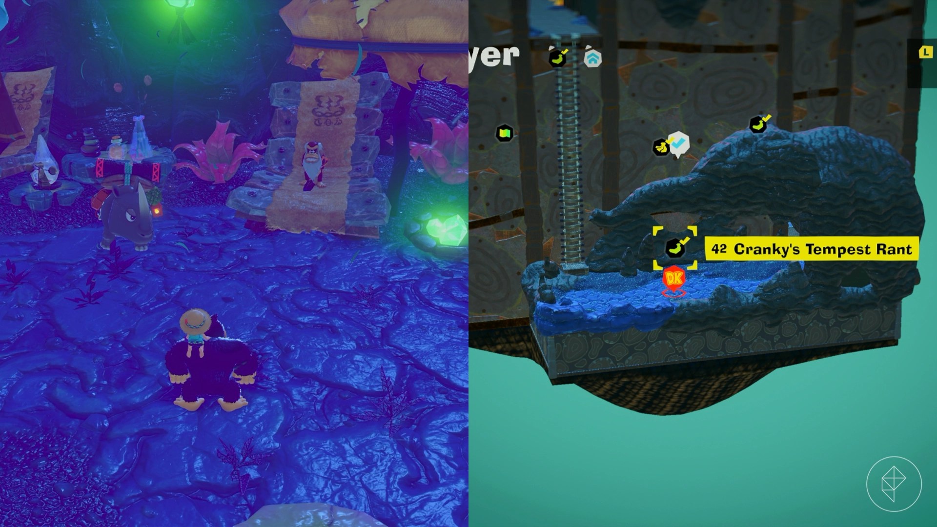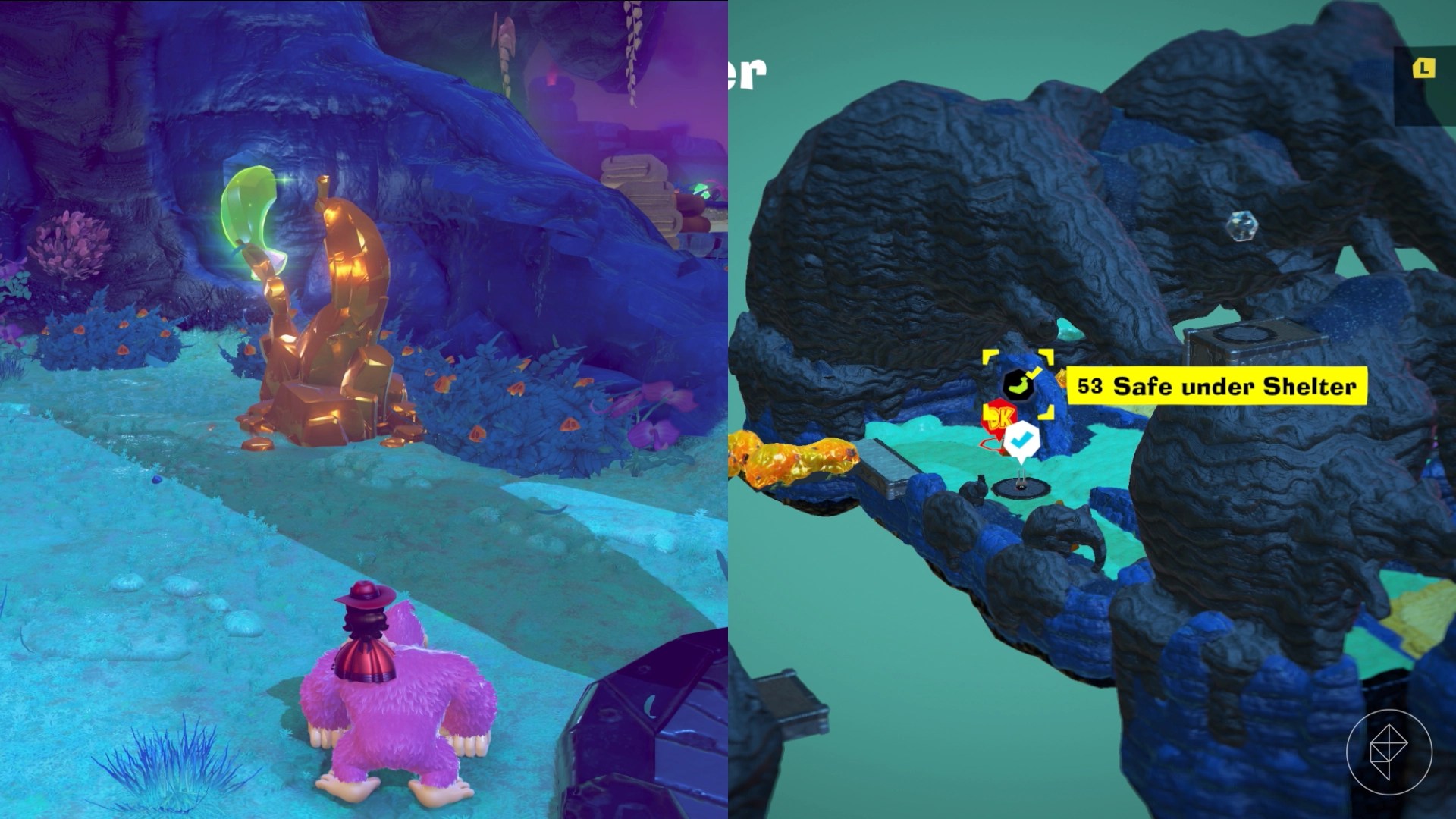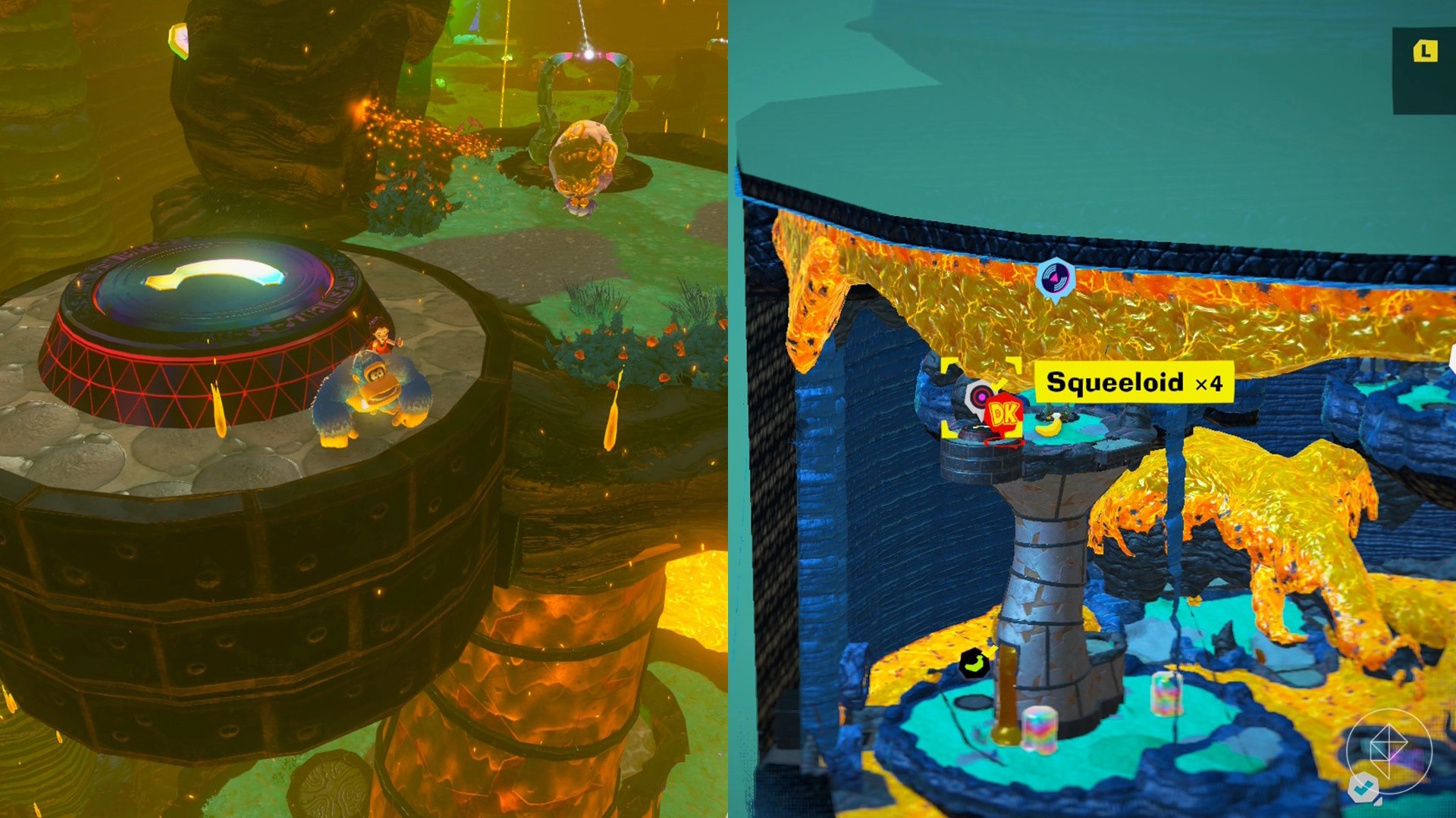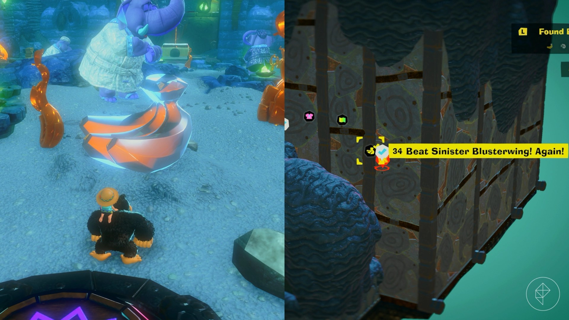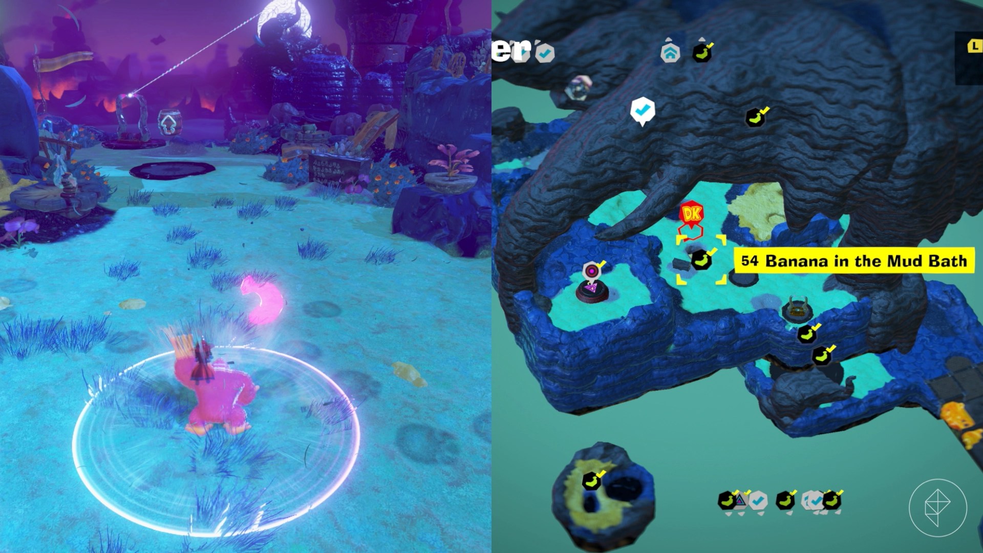 W podziemnych tunelach za Void Machine znajdziesz kolejne ukryte miejsca z bananami, a w arenie Blusterwinga użyj mocy Elephant Bananza, by usunąć lawę i dostać się do sekretnego banana.