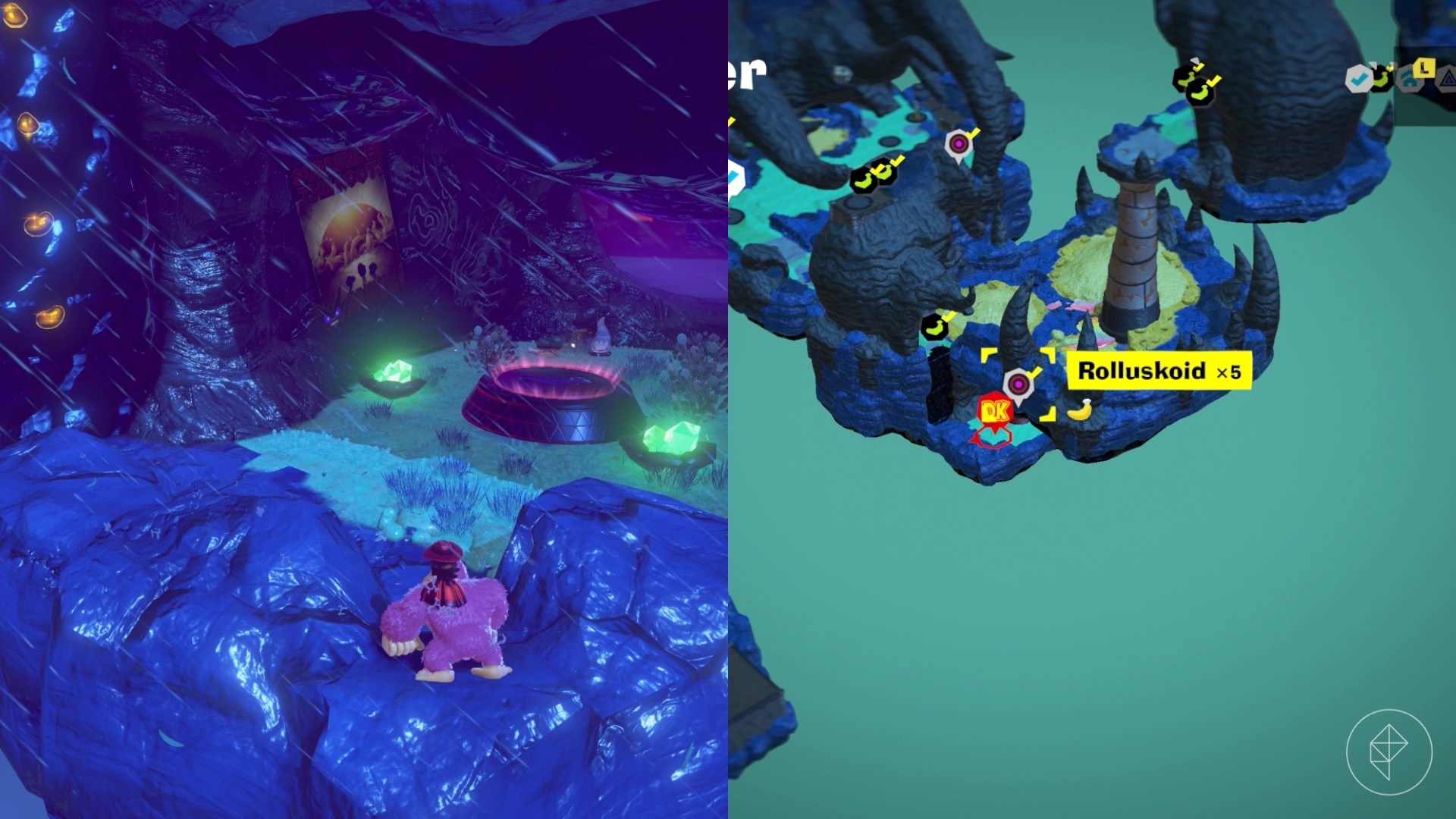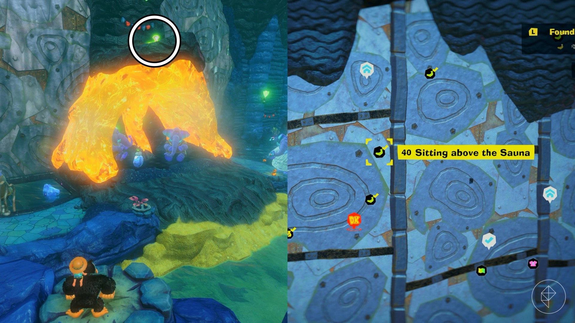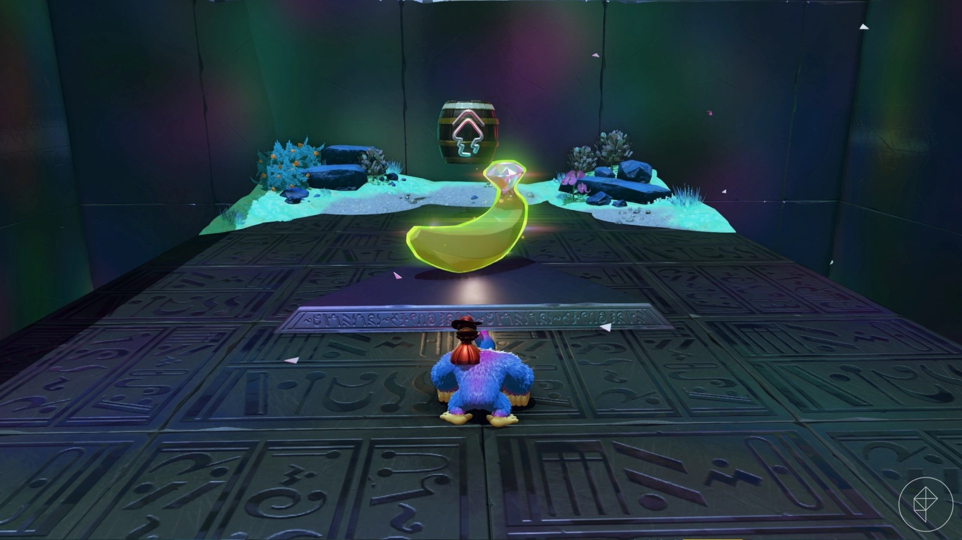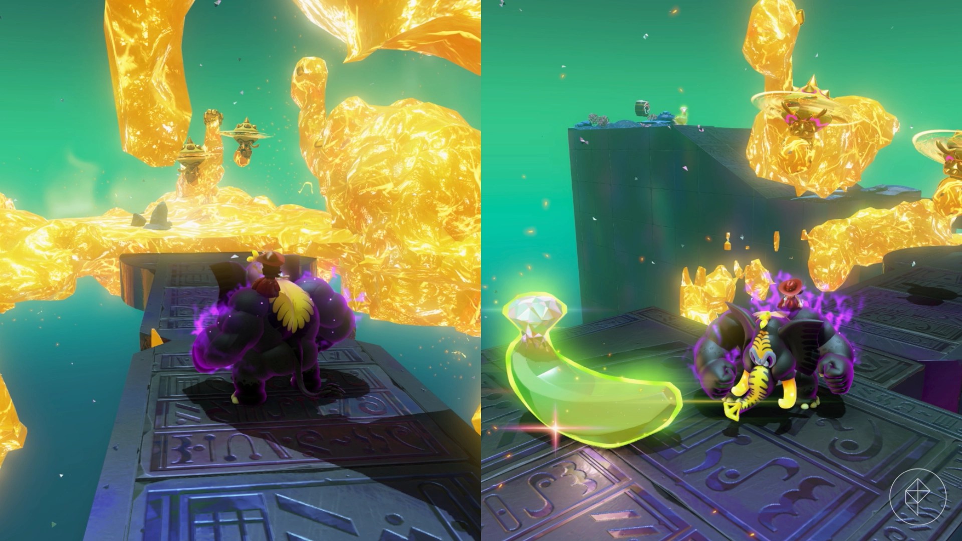 W podziemnych tunelach za Void Machine znajdziesz kolejne ukryte miejsca z bananami, a w arenie Blusterwinga użyj mocy Elephant Bananza, by usunąć lawę i dostać się do sekretnego banana.