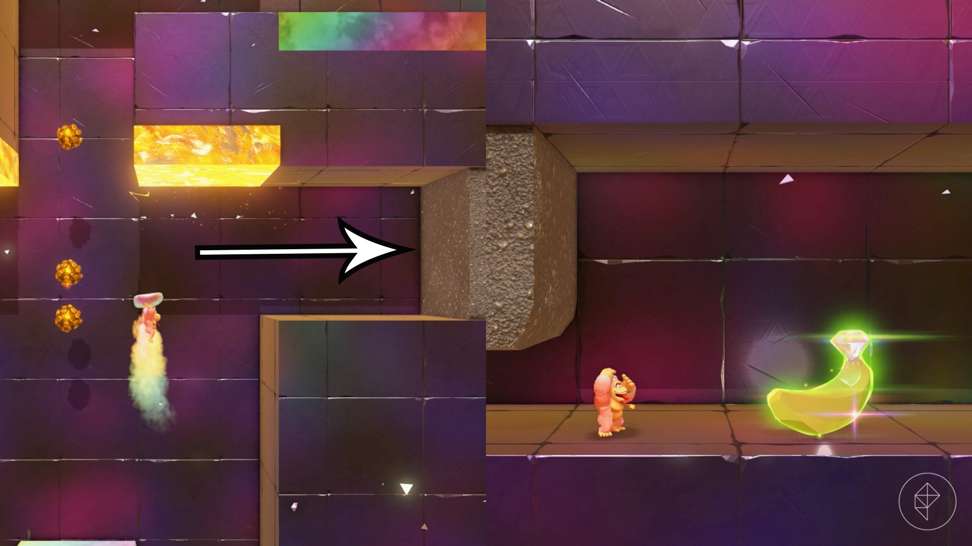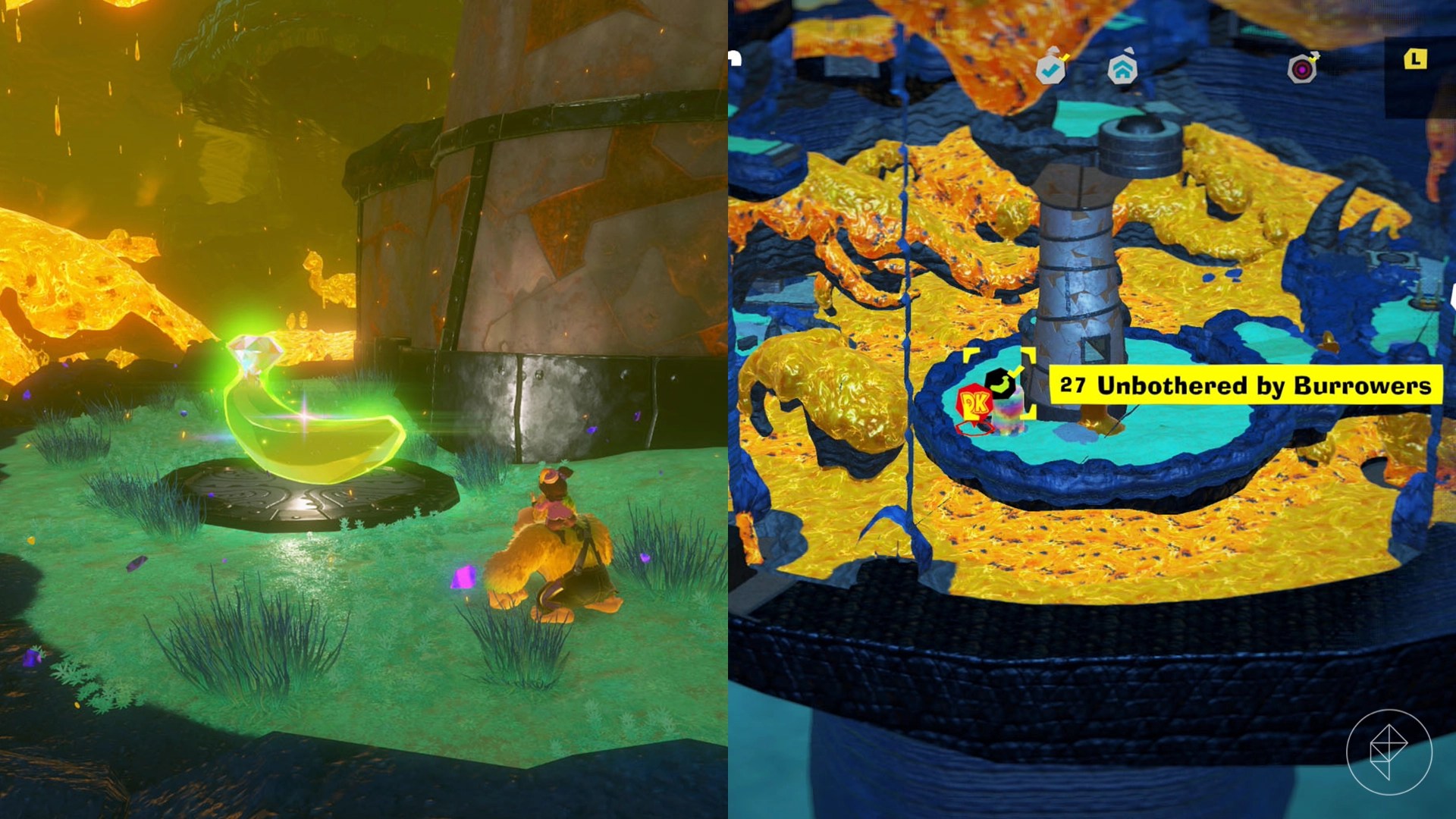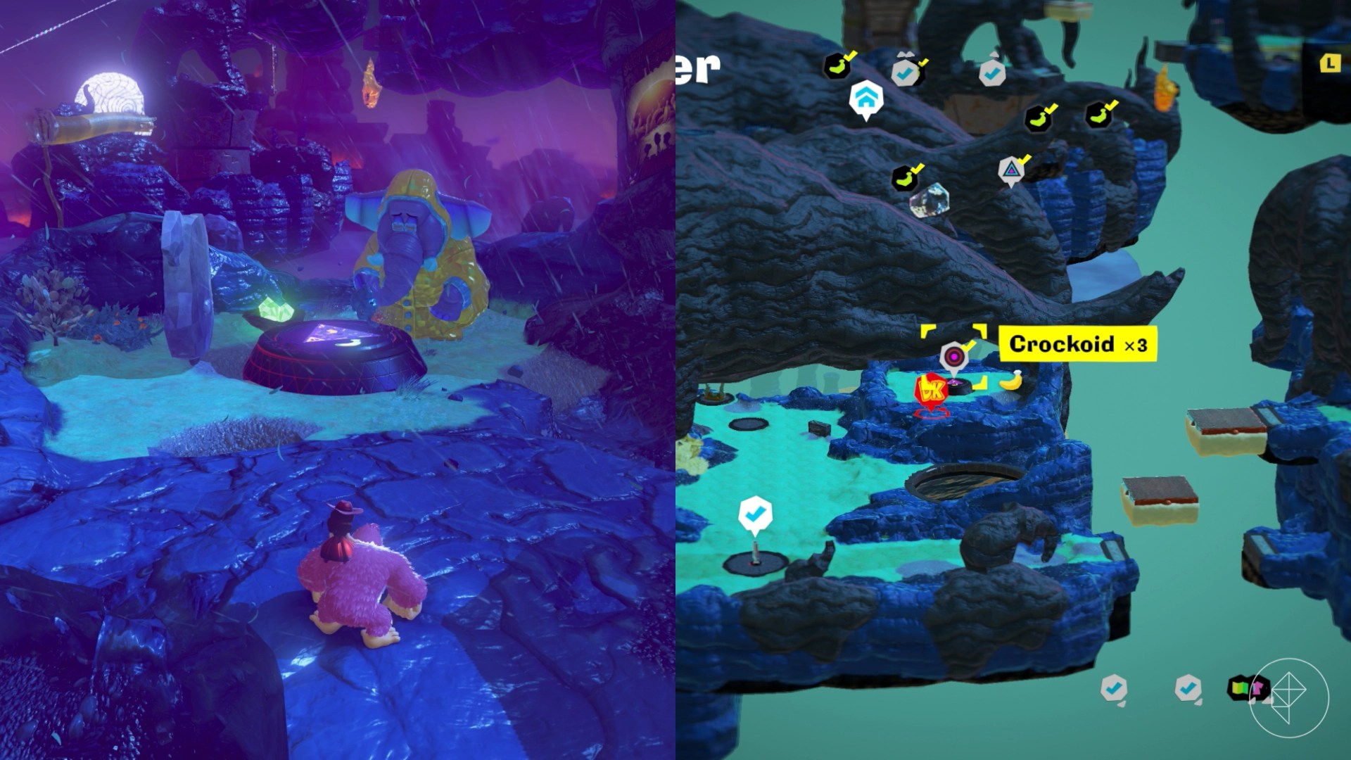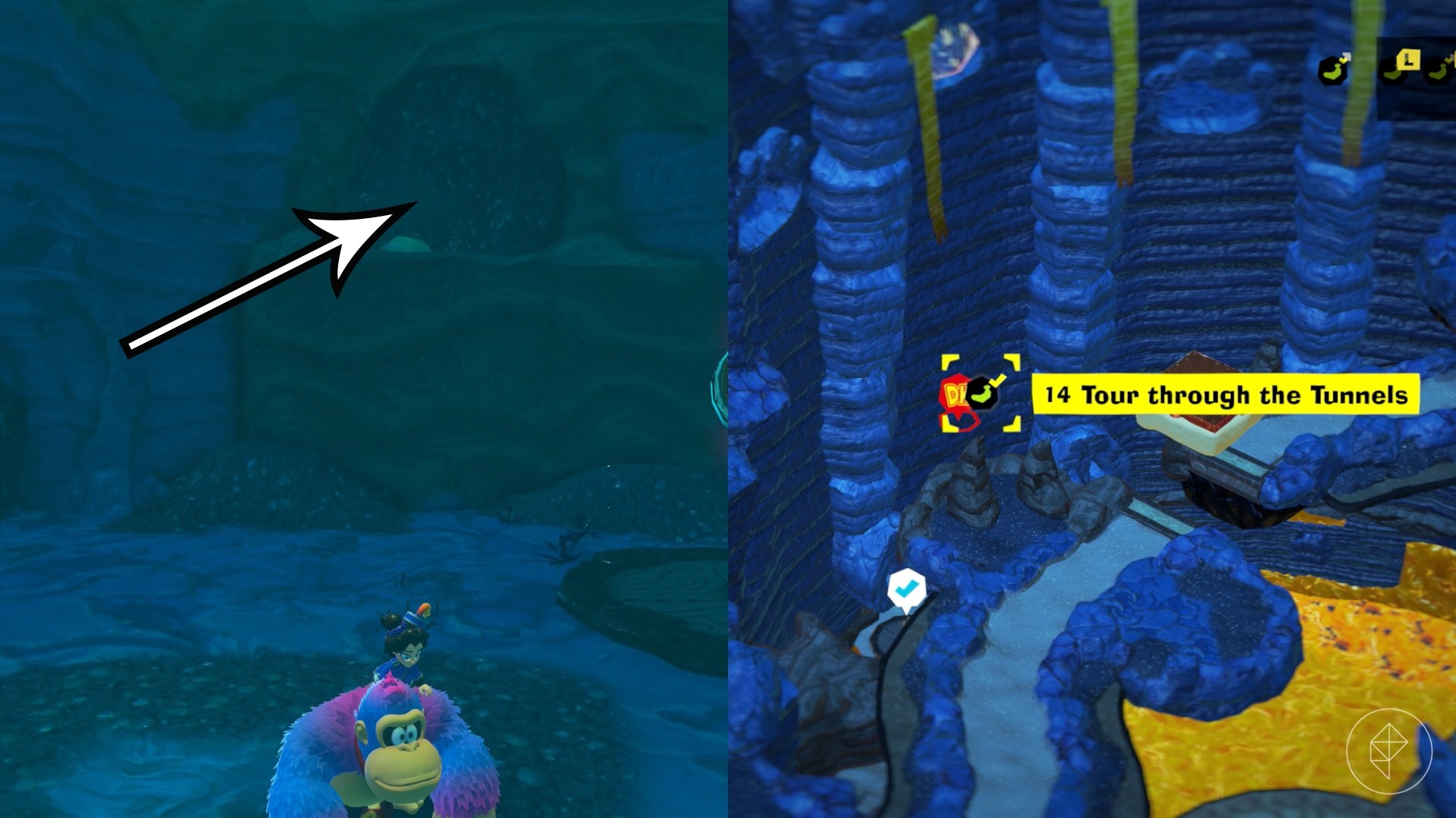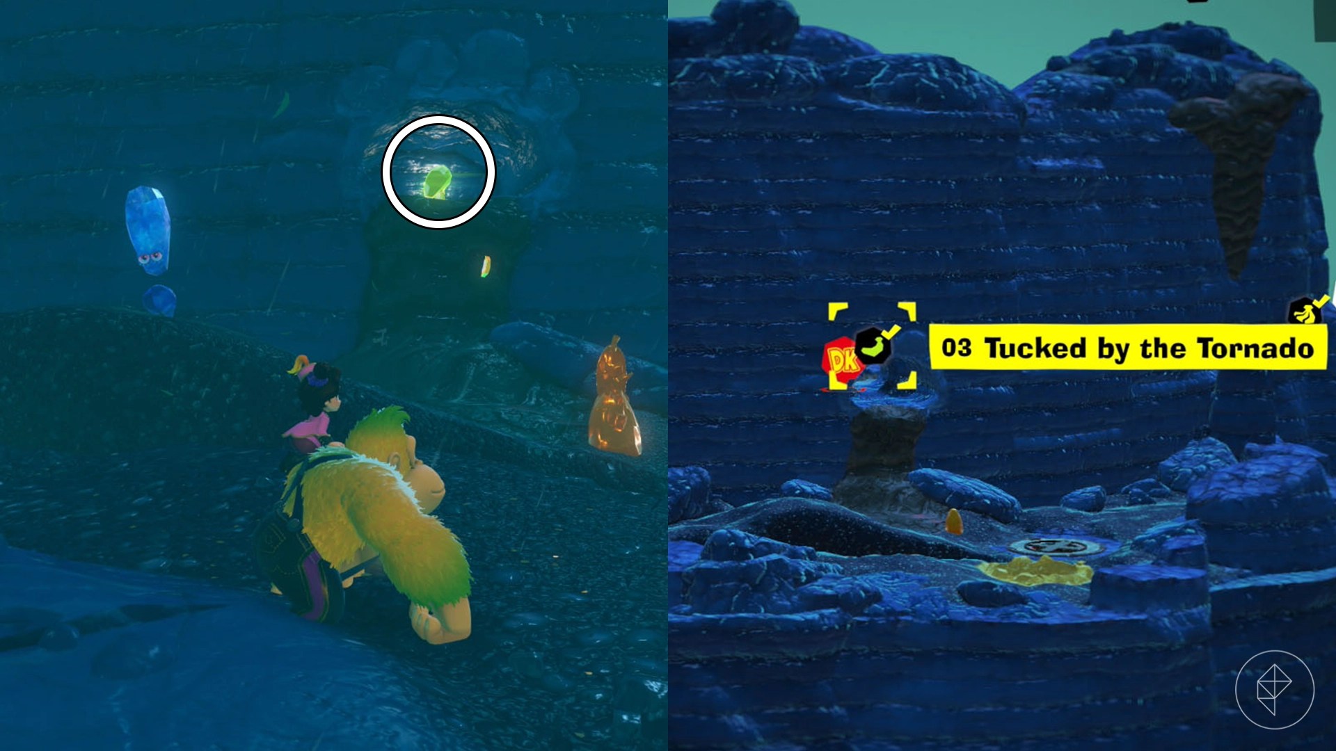 W podziemnych tunelach za Void Machine znajdziesz kolejne ukryte miejsca z bananami, a w arenie Blusterwinga użyj mocy Elephant Bananza, by usunąć lawę i dostać się do sekretnego banana.