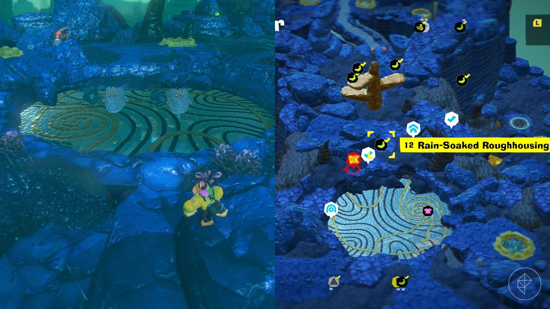 Pamiętaj o eksploracji wokół Big-Roof Shelter – tam czekają ukryte jaskinie, walki z przeciwnikami i kolejne banany do zebrania.