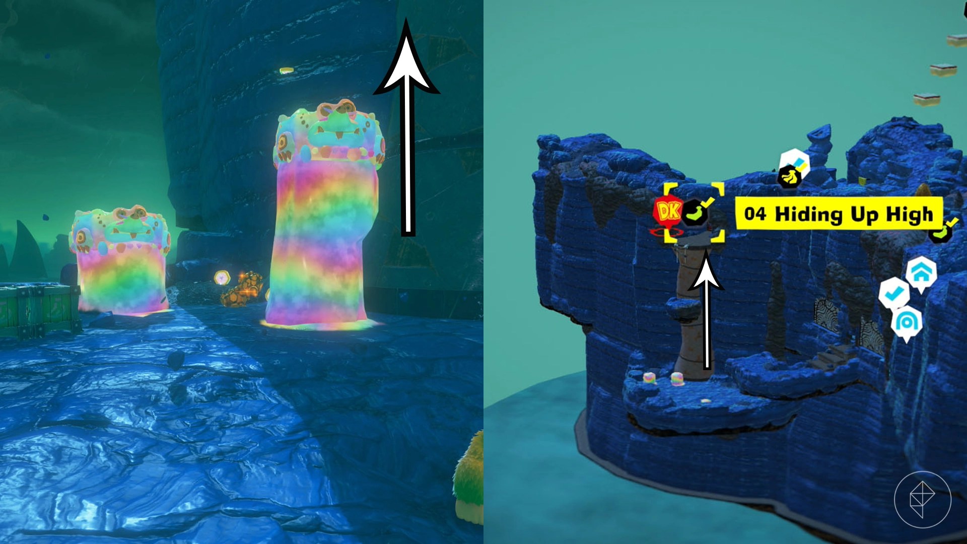 Niedaleko Warp Gong, po przełamaniu drzwi, znajdziesz dwa tęczowe wrogie stworzenia, które pomogą Ci wzbić się w powietrze do kolejnego ukrytego banana.