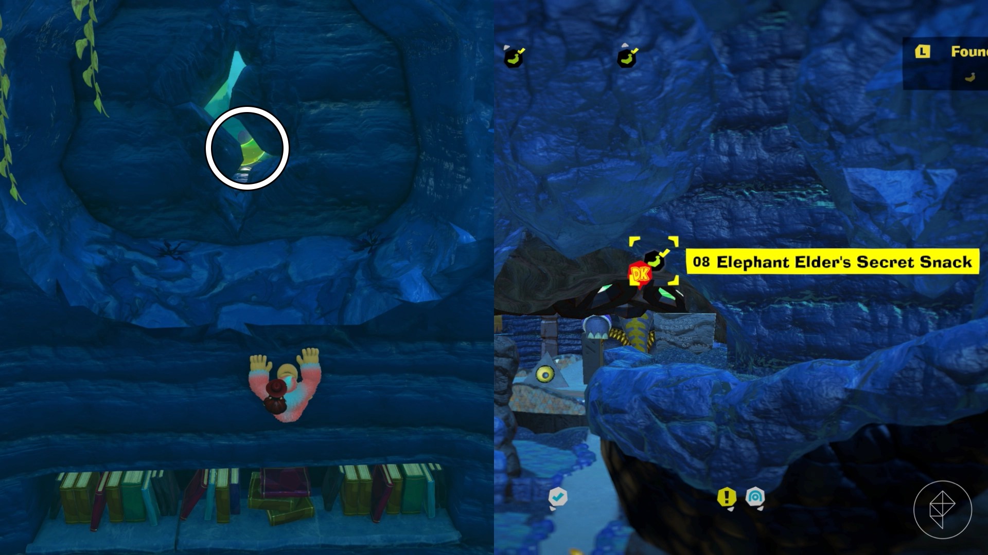 Nie zapomnij odwiedzić Elephant Elder – za jej plecami znajdziesz kolejne banany po złamaniu pękniętej ściany i nakarmieniu Growtone’a złotem, aż do uzyskania trzech bananów.