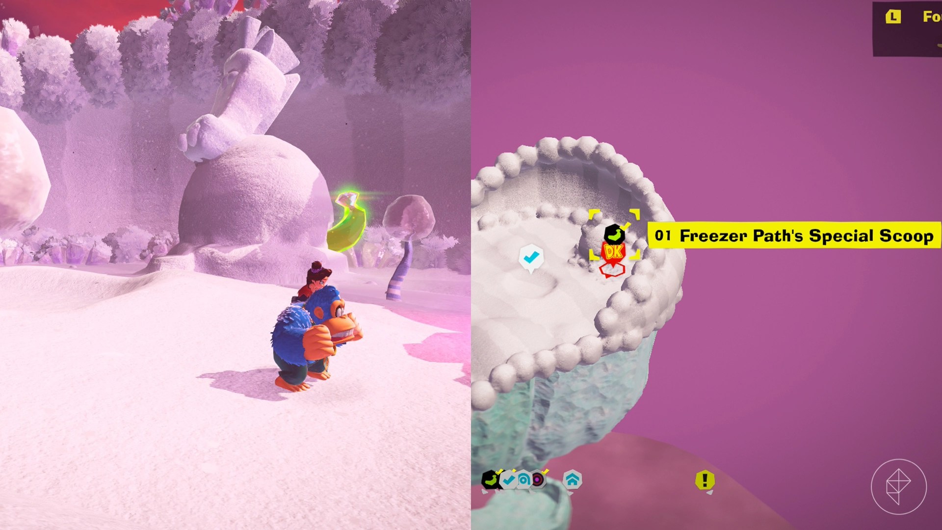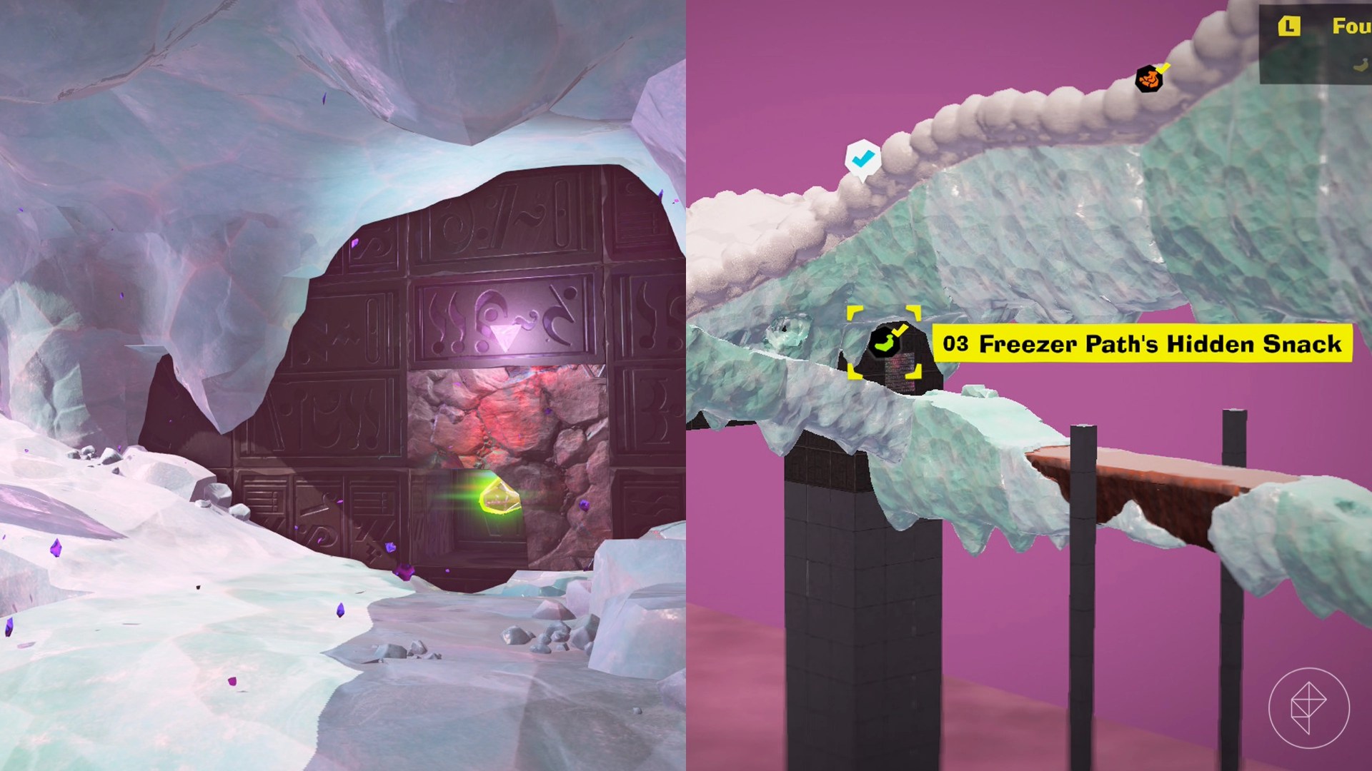 Po oczyszczeniu voidu na ścieżce Freezer Layer wróć do miejsca, gdzie spadłeś. Zobaczysz bryłę śniegu z wystającym gemem.