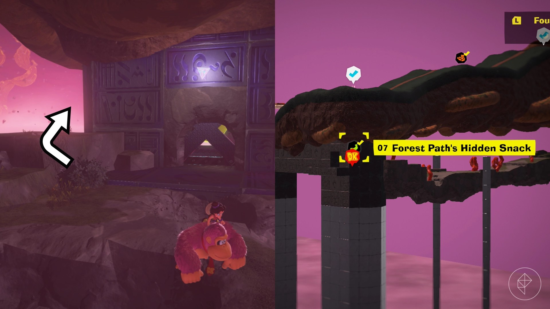 Po ukończeniu Forest Layer wskocz w dół do Divide i odbierz gem warty pięć bananów.